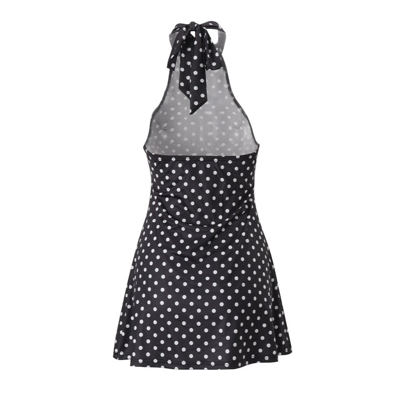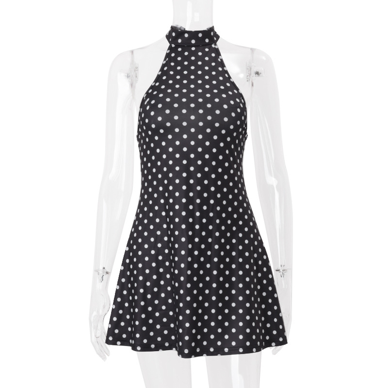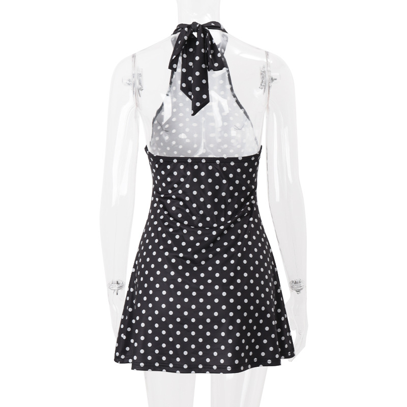 Fashionable and elegant polka dot print sexy backless waist dress