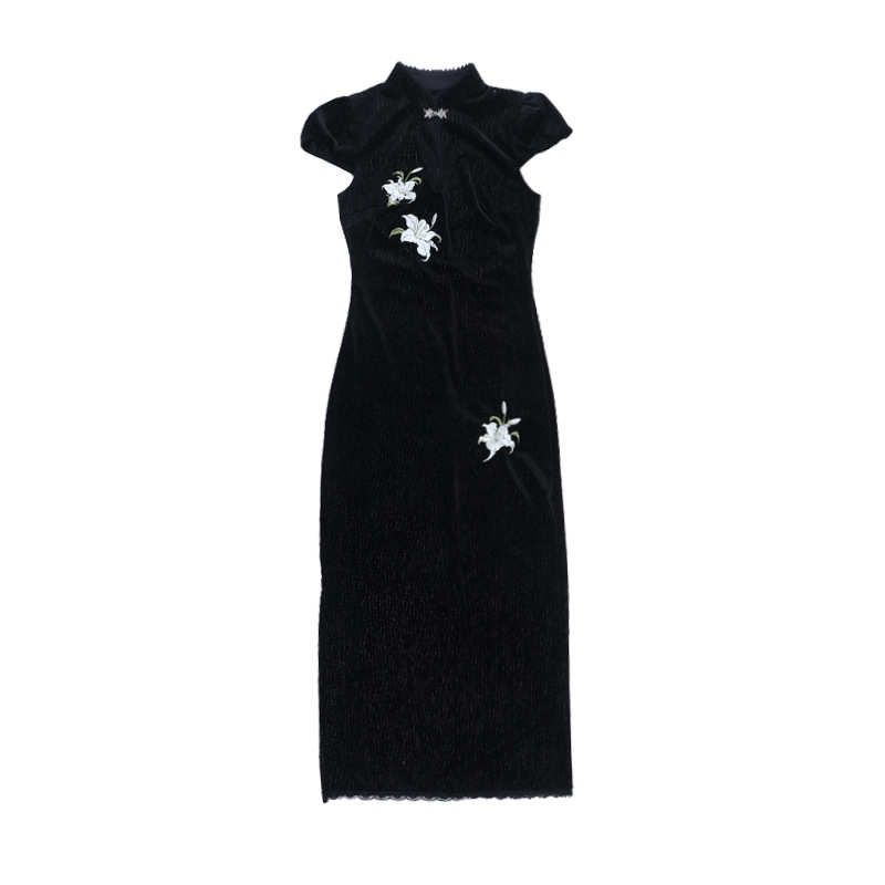 New Chinese style silver velvet cheongsam dark style sexy slim cheongsam dress