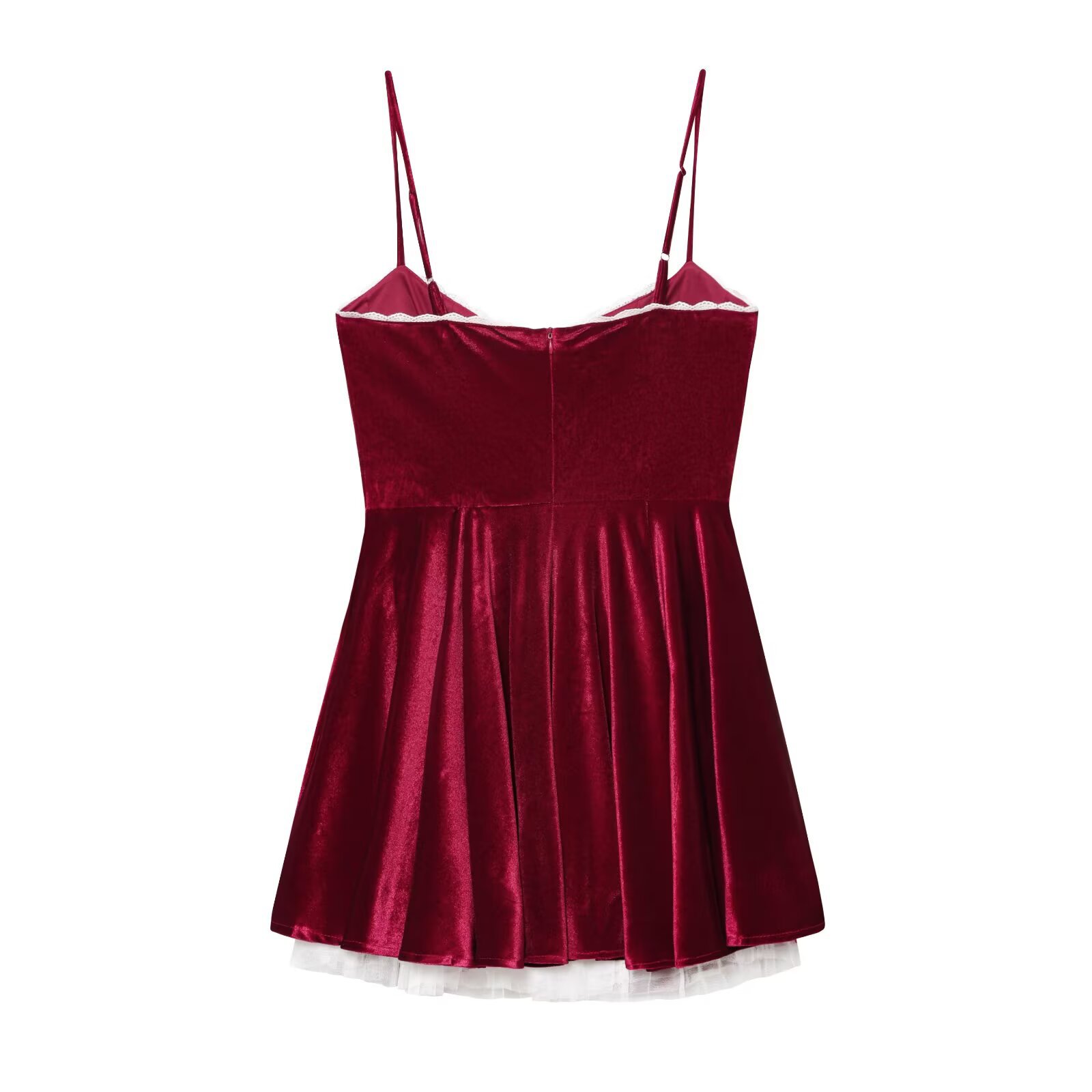 Holiday style pastoral print dress sexy lace stitching slim suspender skirt