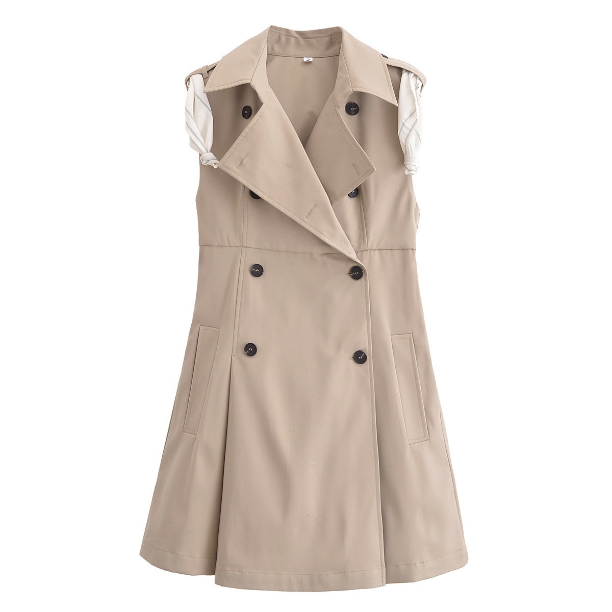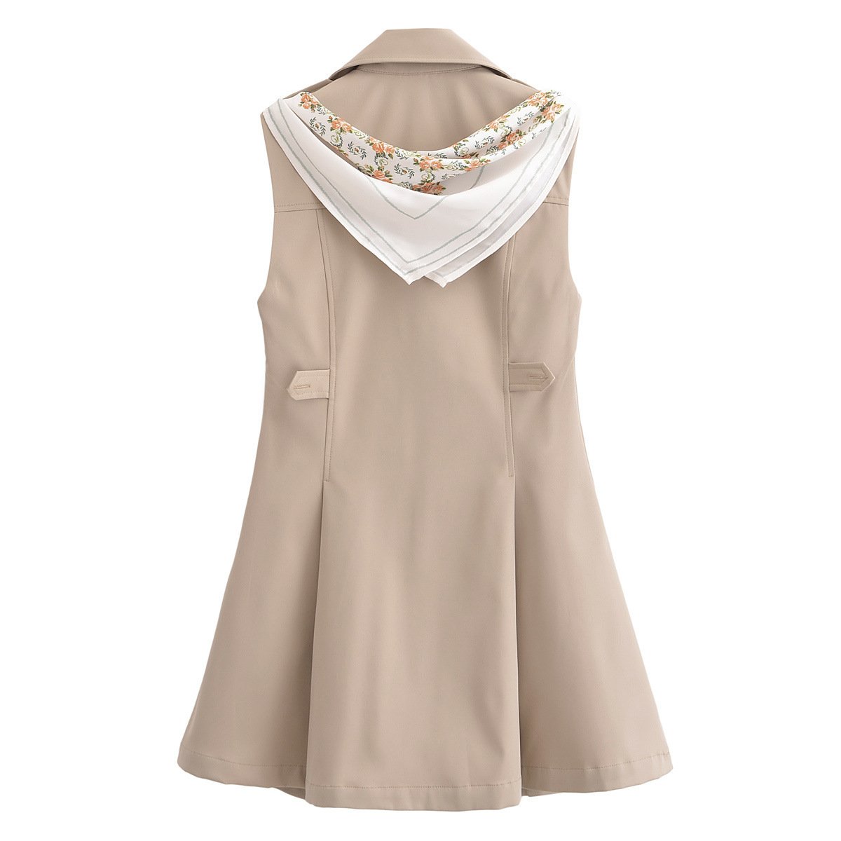 Street Fashion Square Scarf Trench Coat Sleeveless Dress