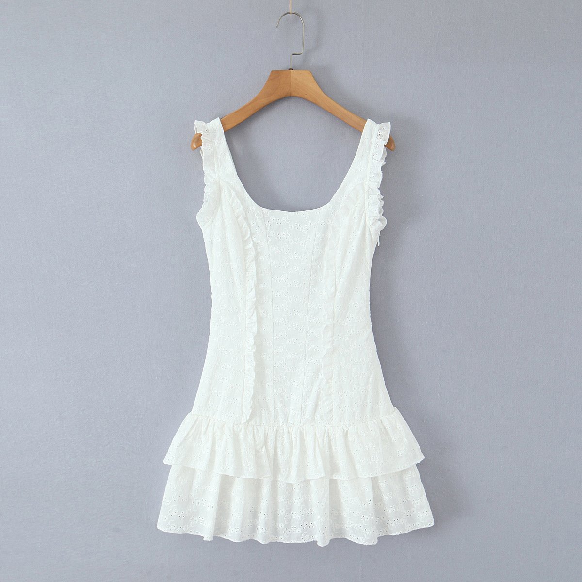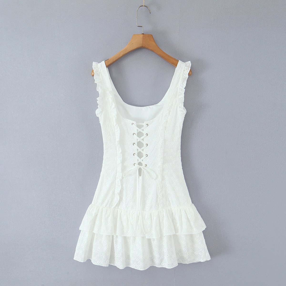 Tight waist lace design short skirt ruffle sleeveless mini dress