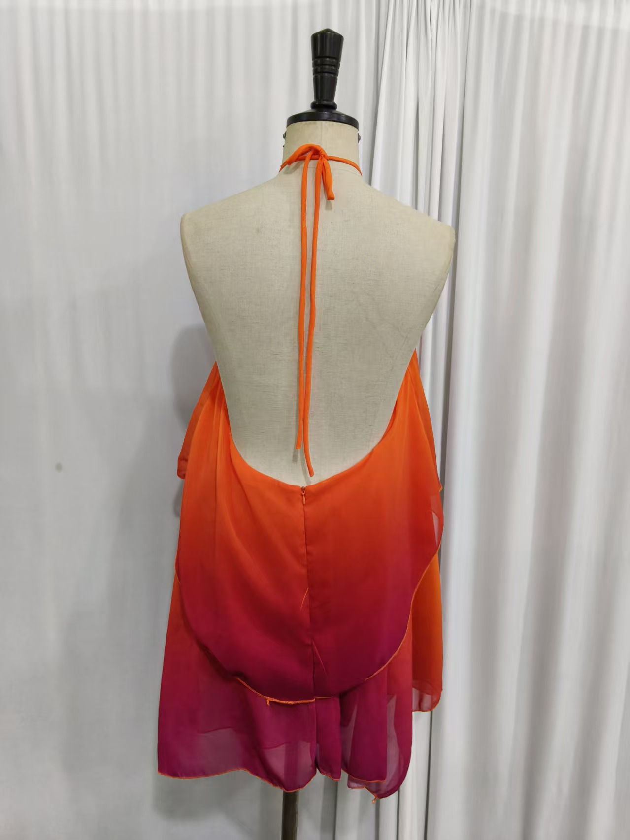 Sexy suspender nightgown with ruffled hem and slit pajamas and home wear
