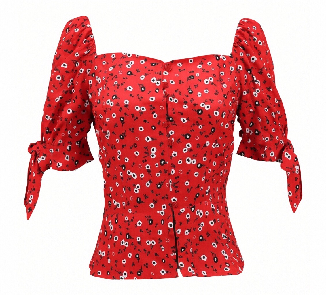 Square collar backless pleated floral chiffon shirt