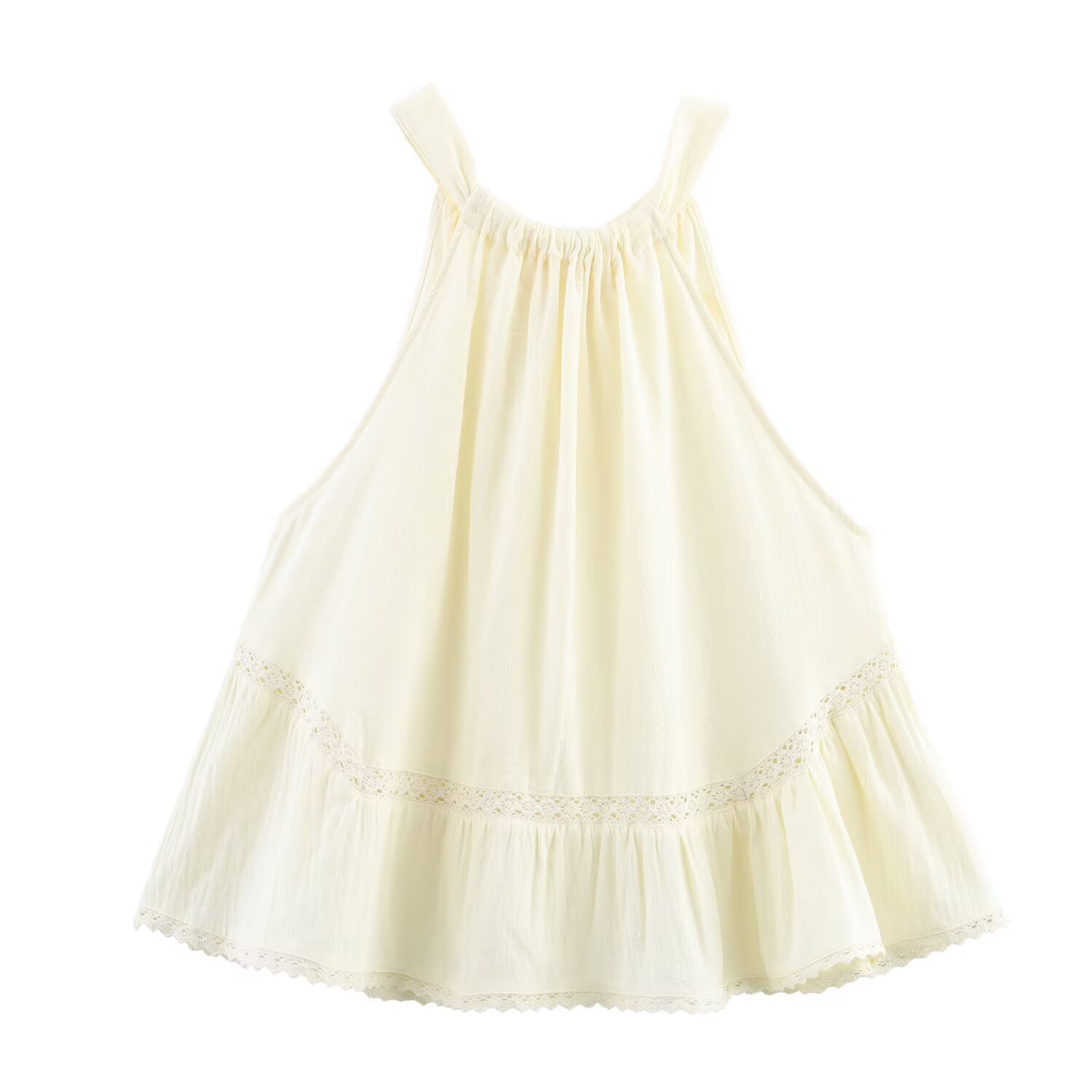 Summer fresh holiday style casual embroidered tulle strap top camisole