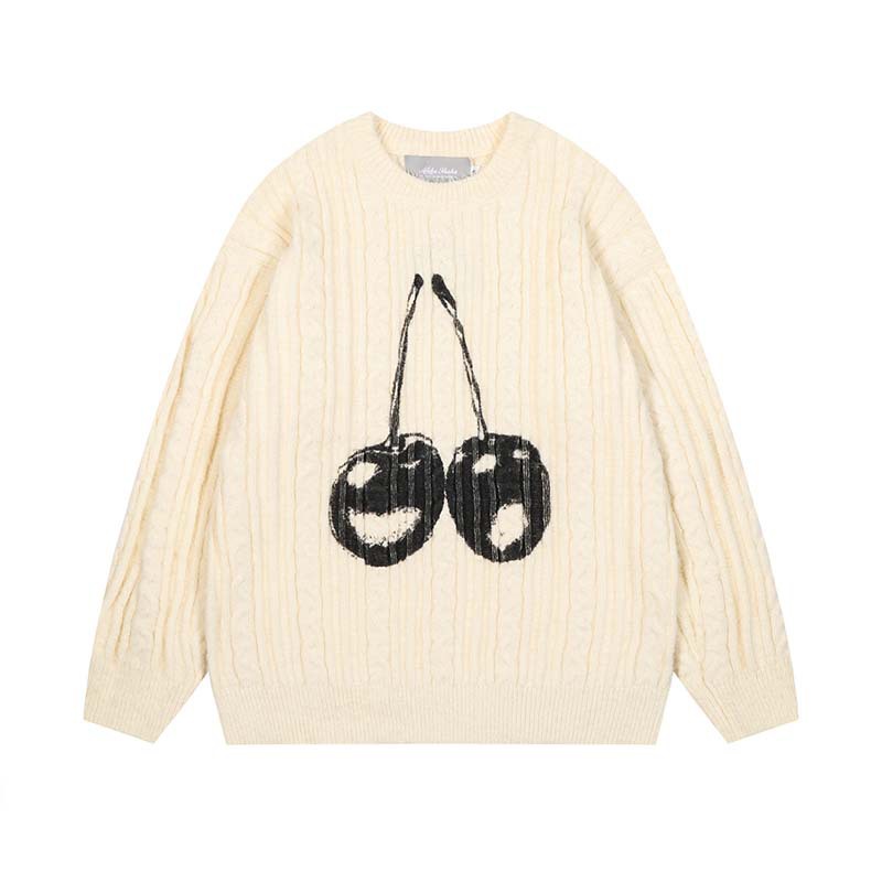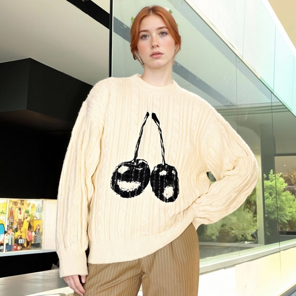 Preppy Cherry Jacquard Crewneck Sweater