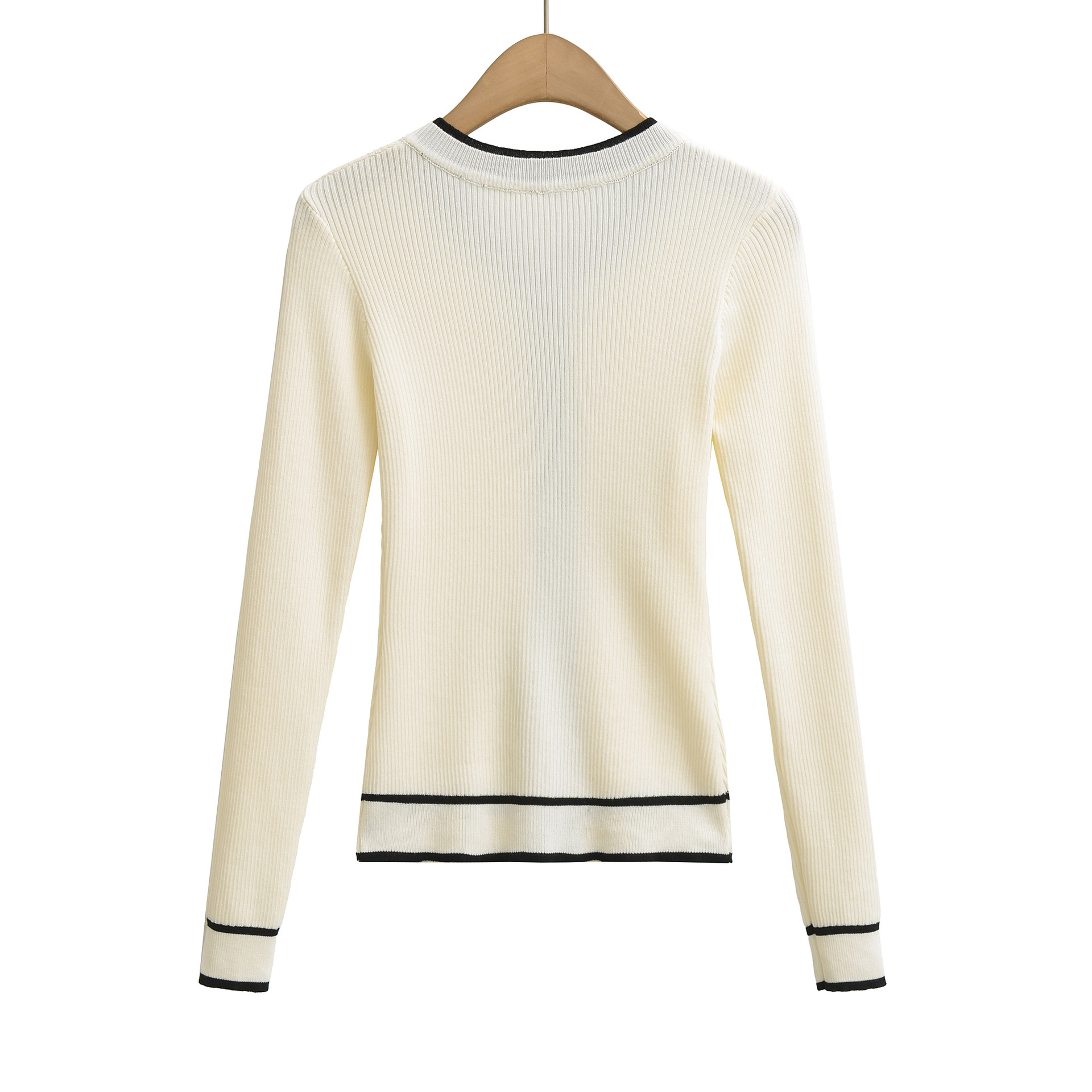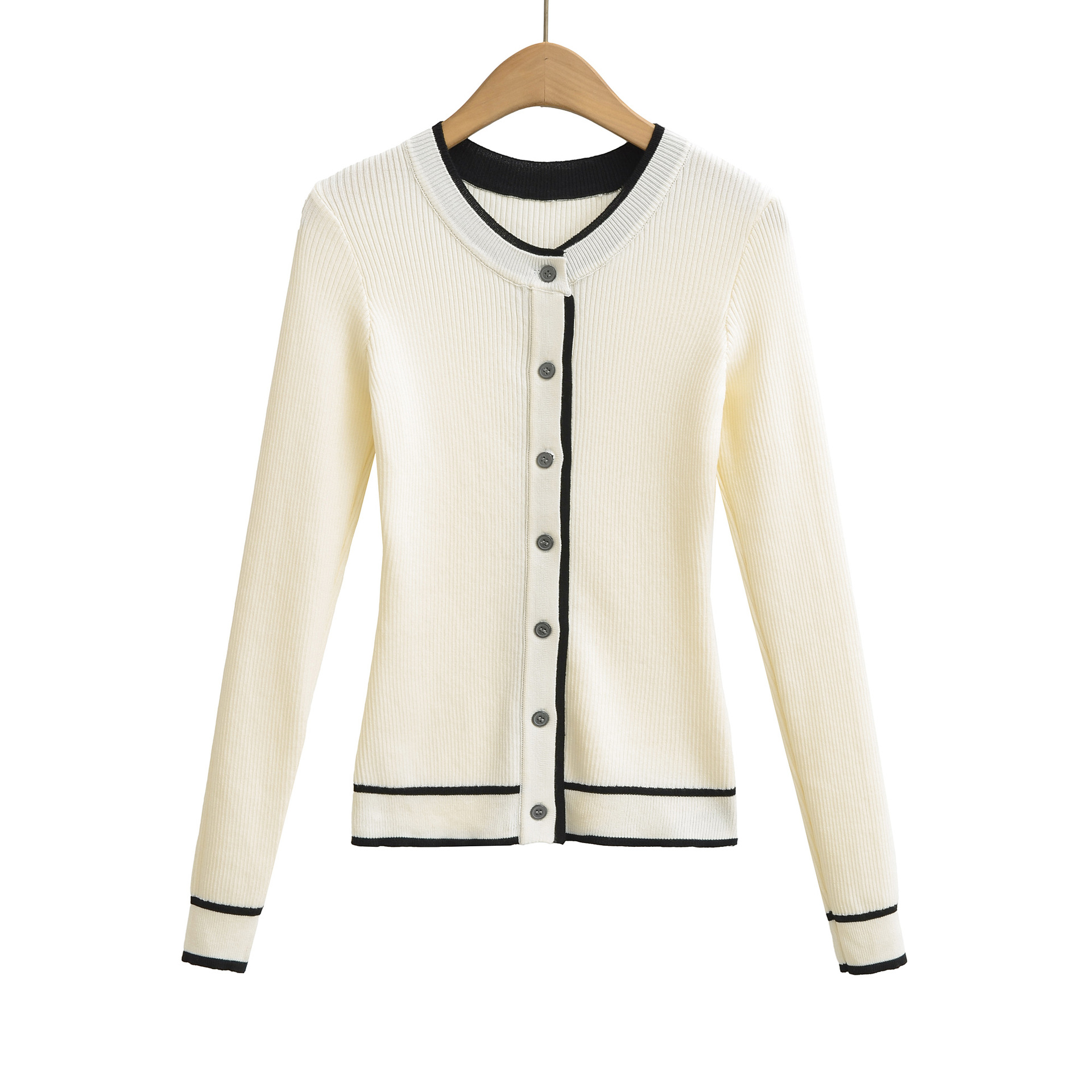 Gentle and elegant casual color-blocked striped round neck button-down long-sleeved knit sweater