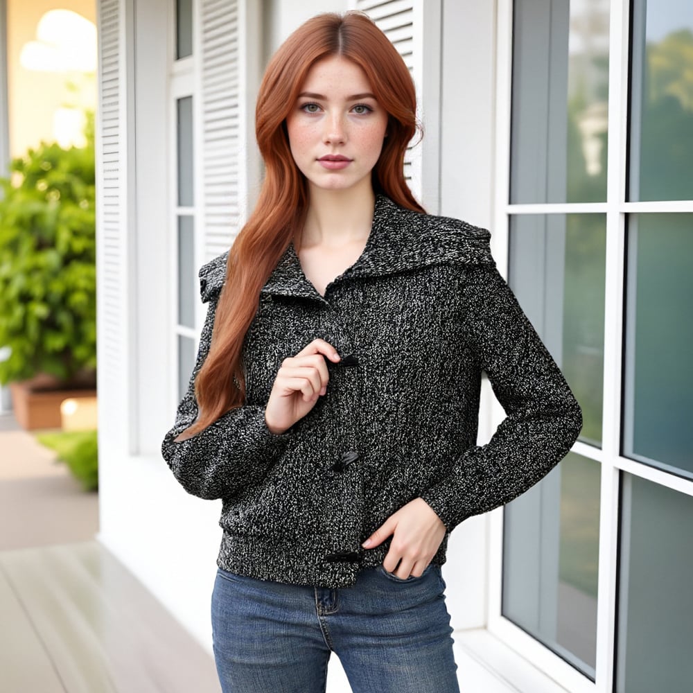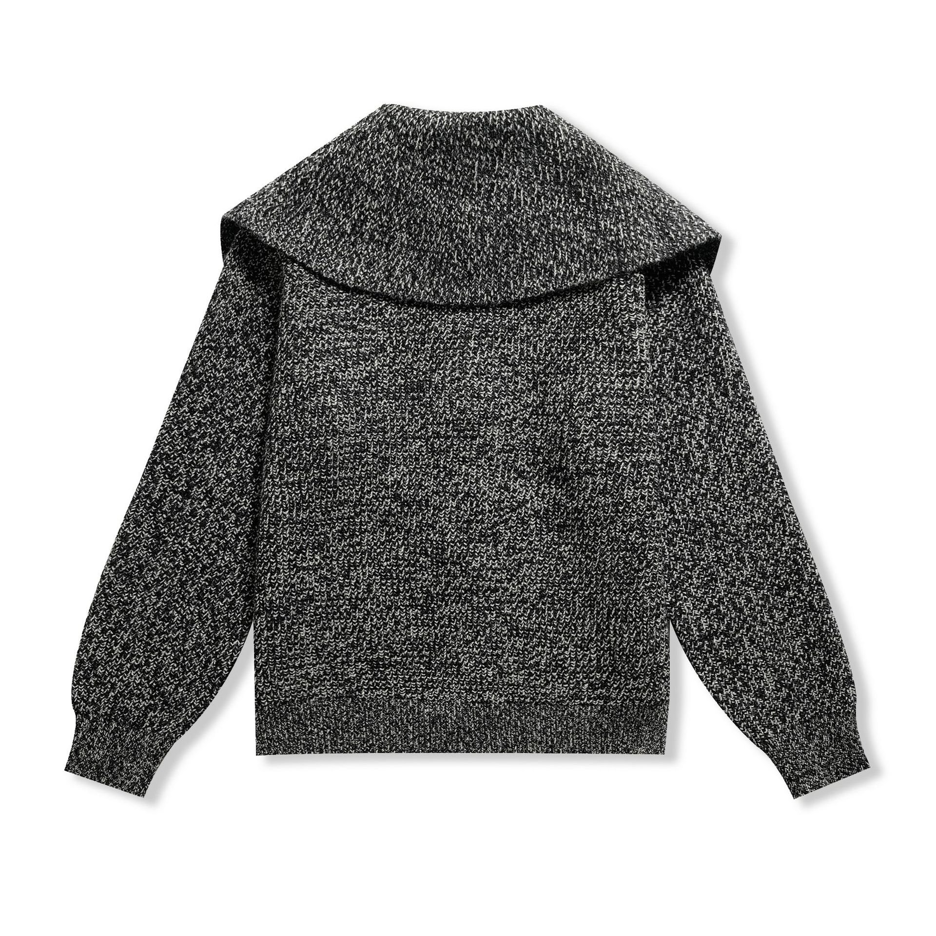 Retro-style mixed color collar long-sleeved duffle coat knit top sweater