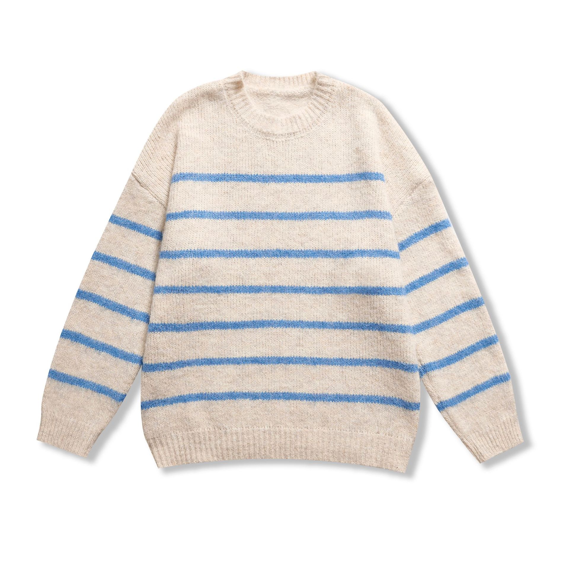 Retro relaxed-fit crew neck long-sleeved pullover striped sweater