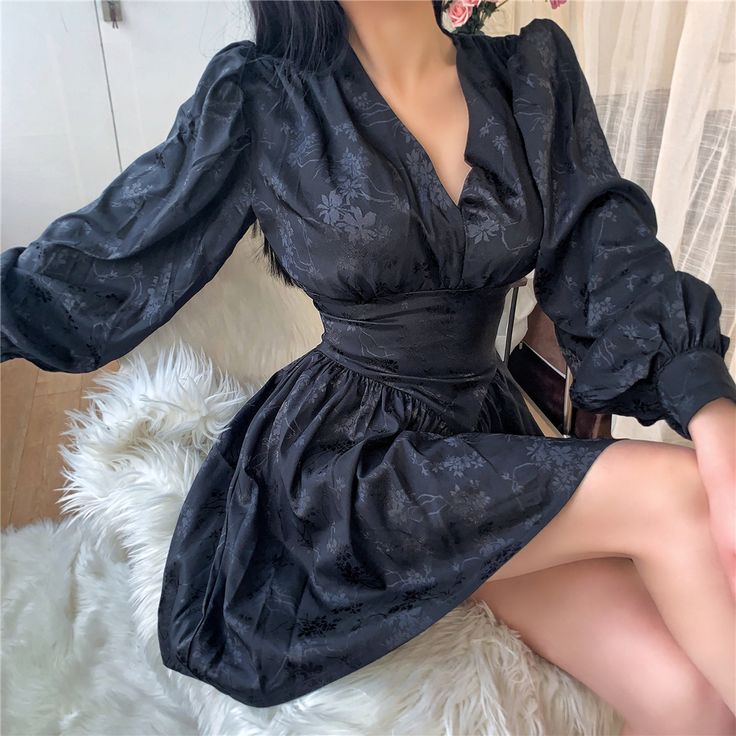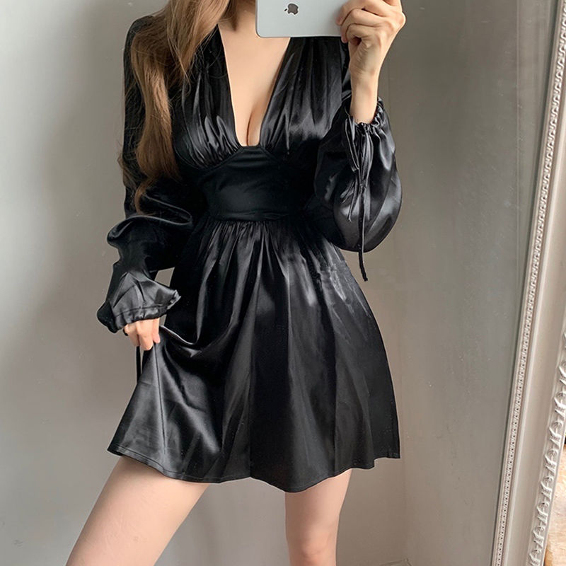 (NO REFUND AND EXCHANGE)Long sleeve V-neck waistband fashion retro temperament slim dress