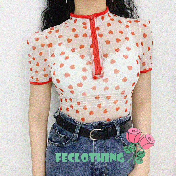 (NO REFUND AND EXCHANGE)Sexy red little love mesh zipper BODYSUIT
