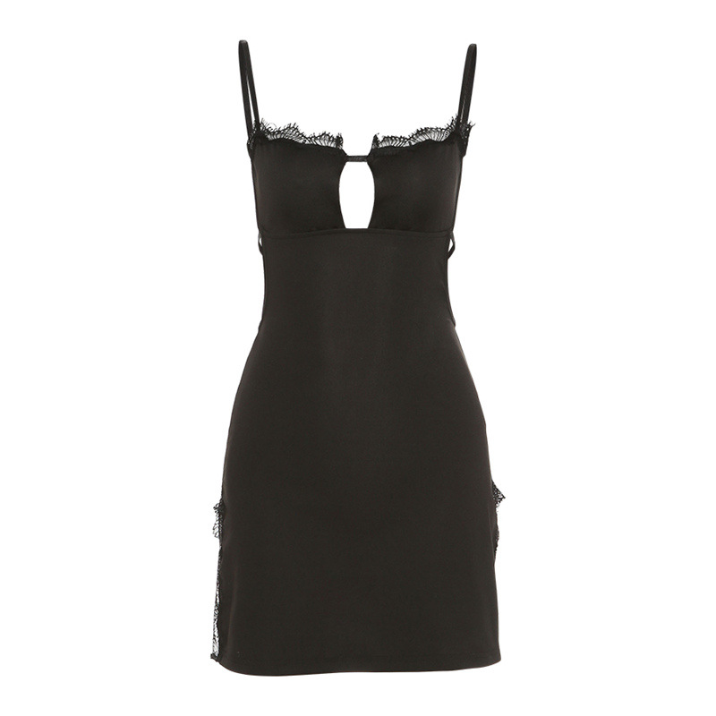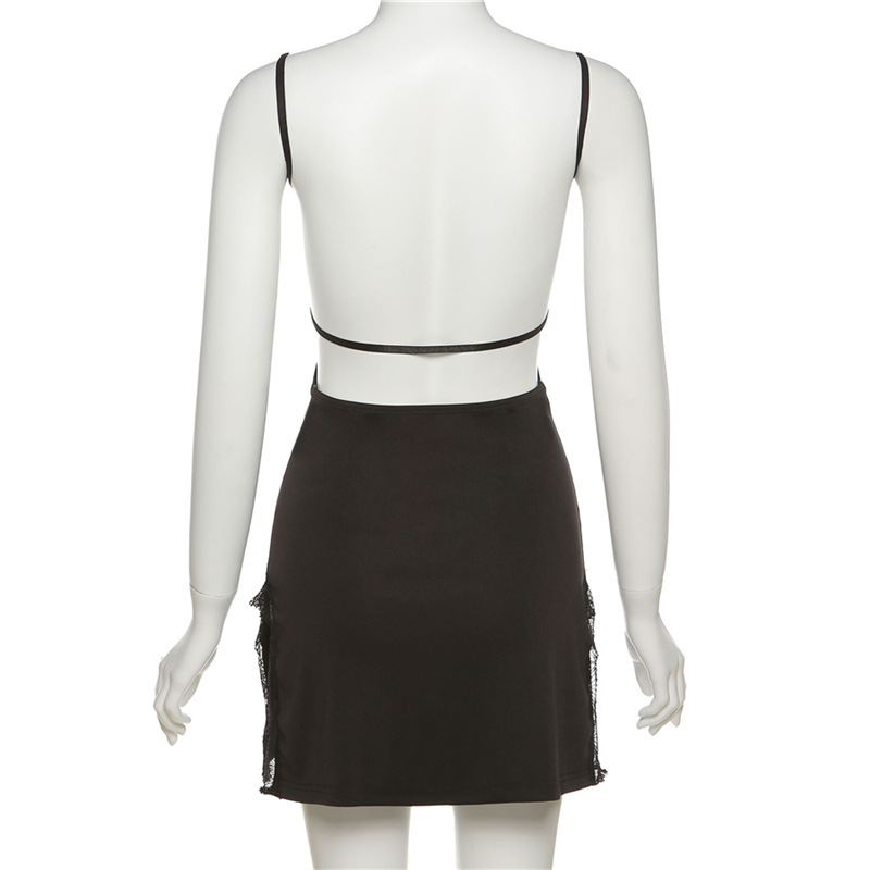 Sexy leopard print contrast color stitching lace V-neck backpack hip dress