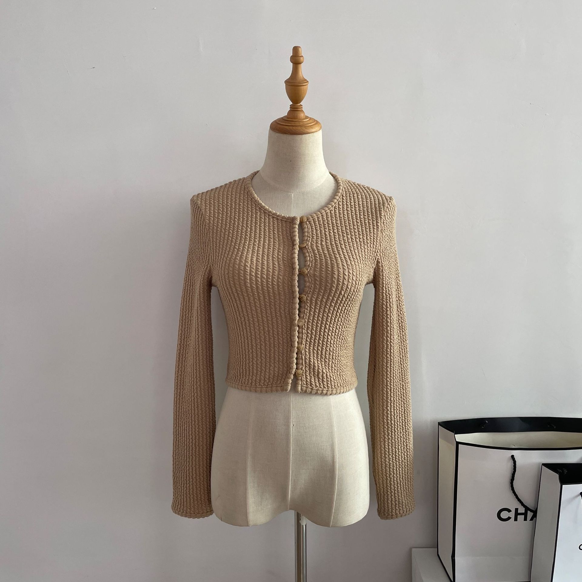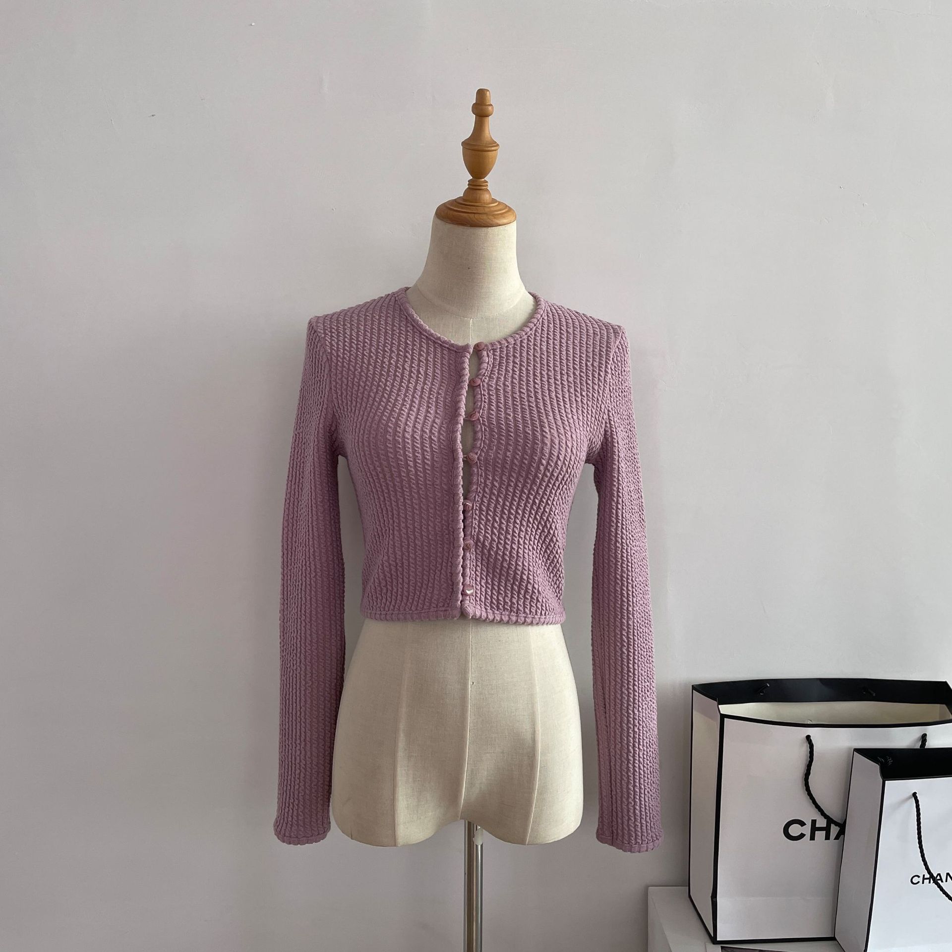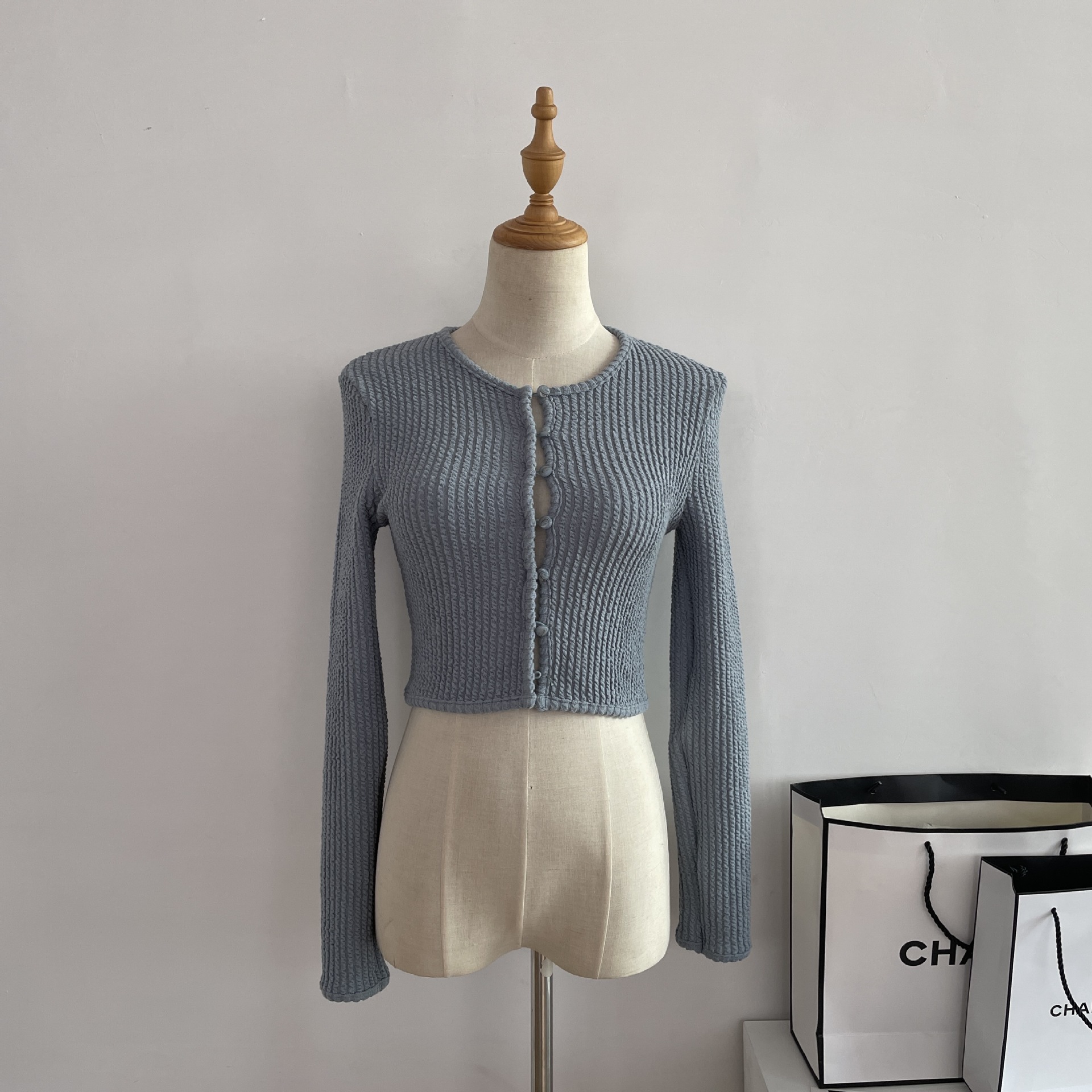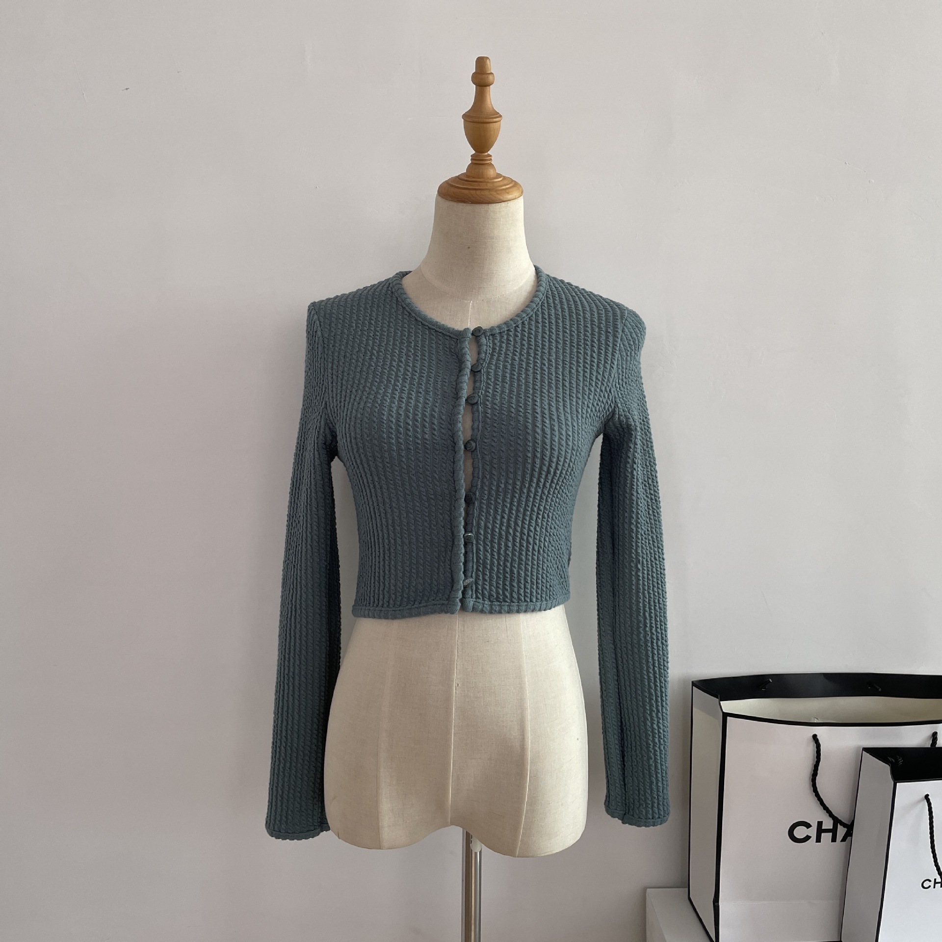Retro round neck button-down slim fit long-sleeved T-shirt