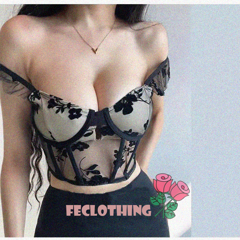 Mesh flower flocking small flying sleeve versatile underwire herringbone vest