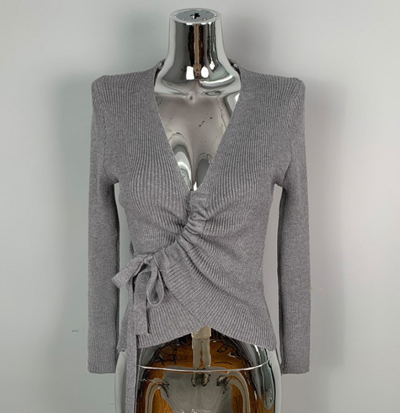 Solid color slim fit navel fashion irregular slanted shoulder long-sleeved T-shirt