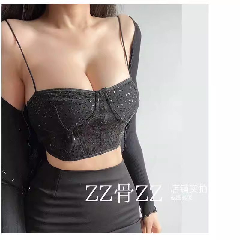 Mesh sequin spaghetti strap suspender unique fashion sexy hot girl vest