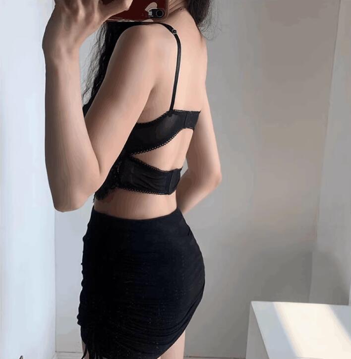 Sexy lingerie sexy steel support gathered front chest temptation lace sling backless pajamas