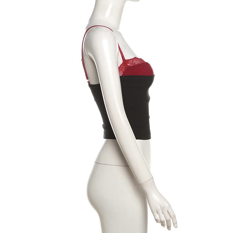 Spliced ​​contrast color hot girl fishbone chest cotton vest