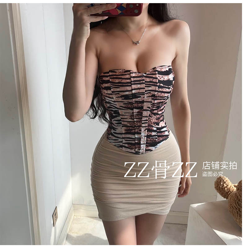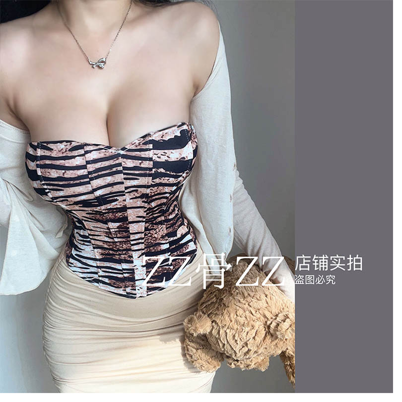 Fashionable and sexy fishbone corset breasted hot girl tube top