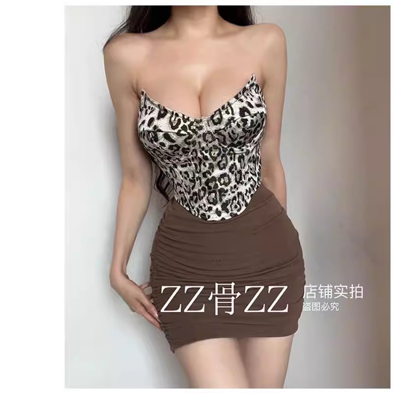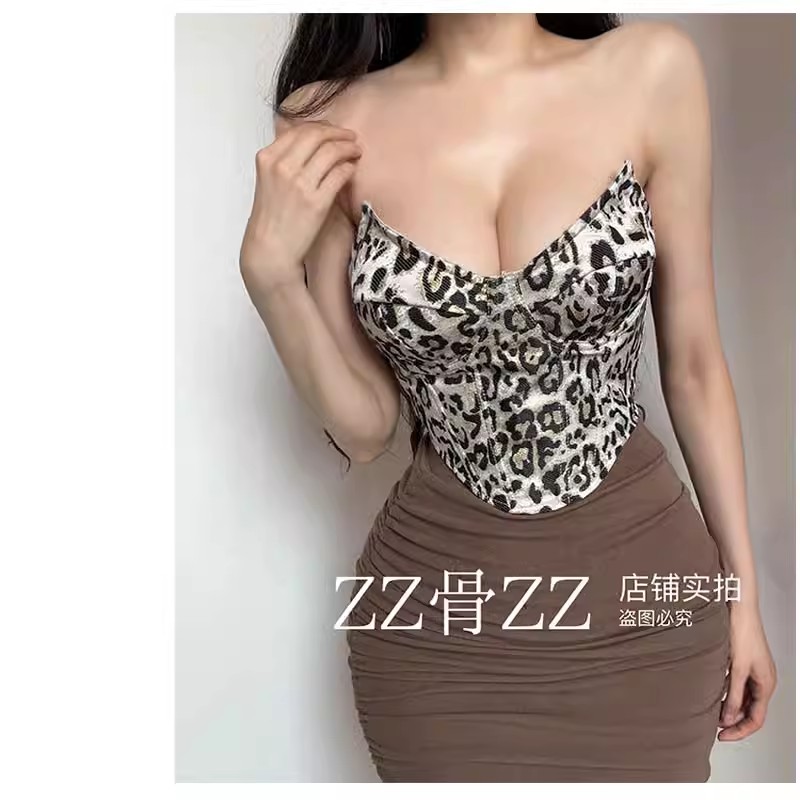 Low-cut diamond-shaped underwire fishbone short lace-up vest