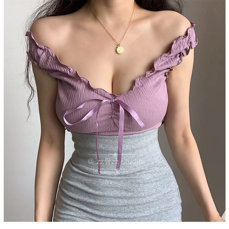 Retro slim V-neck ruffled shawl cardigan top summer thin air-conditioning shirt