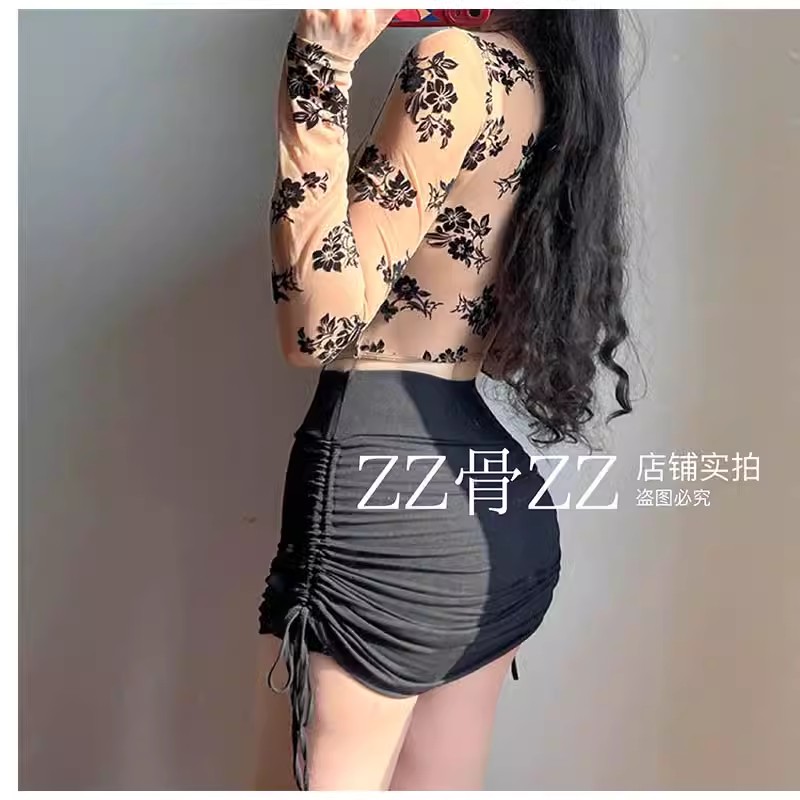 Hollow sexy low-cut long-sleeved T-shirt with heart decoration underwired fishbone top