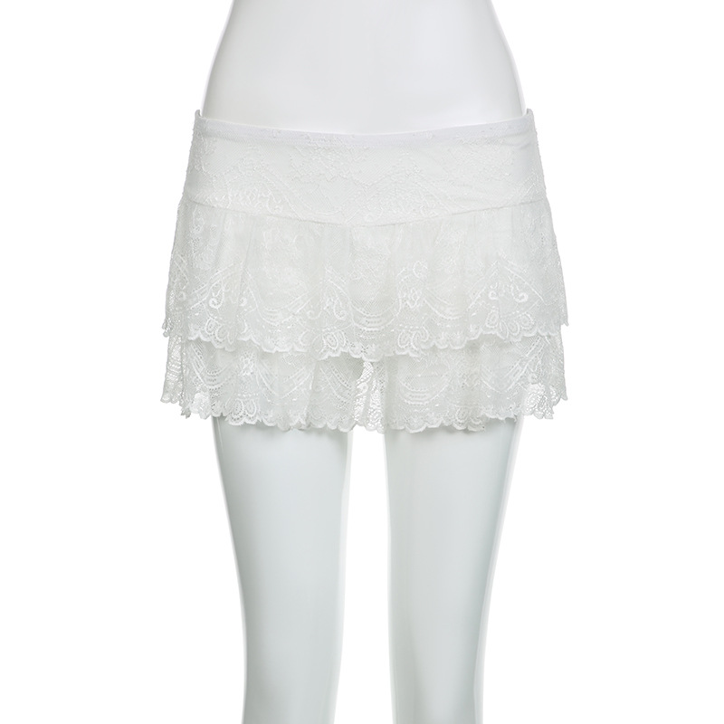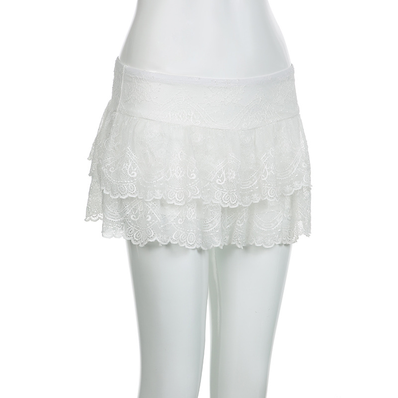 Ballet style basic solid color high waist elastic double layer lace cake skirt