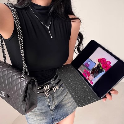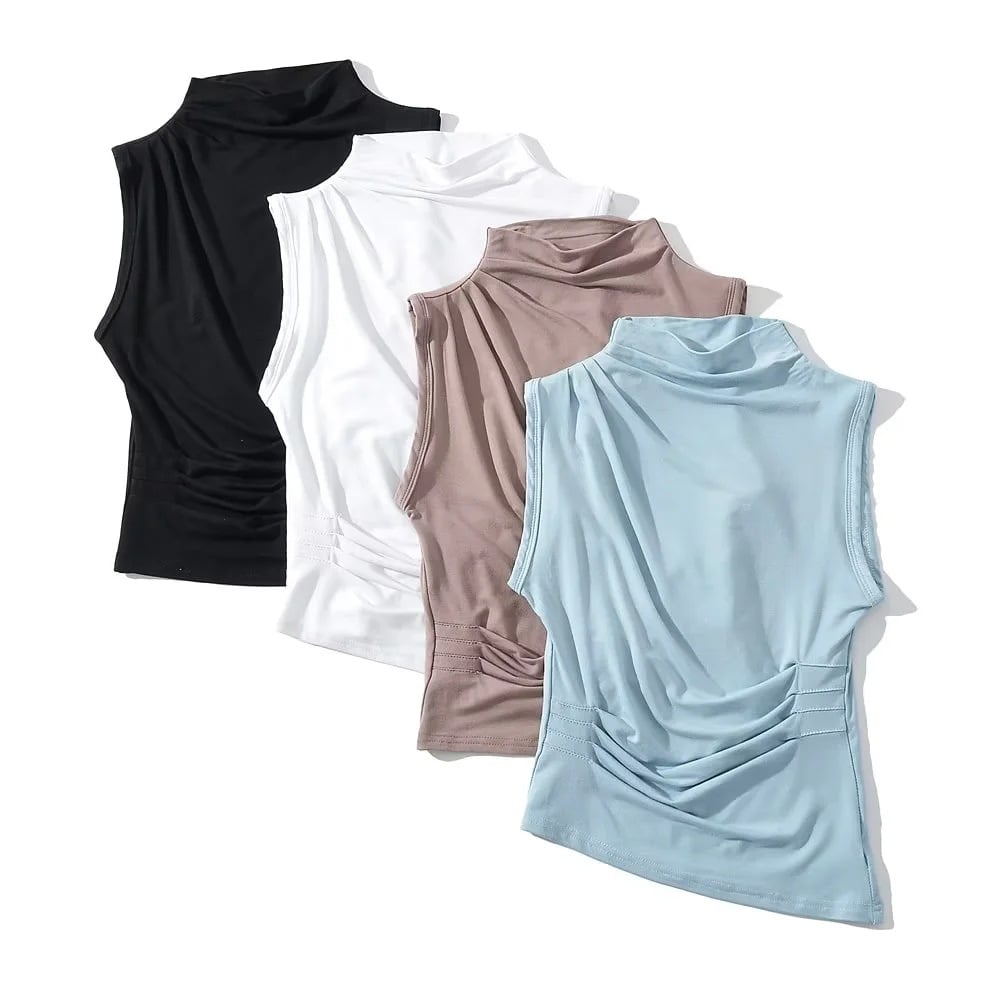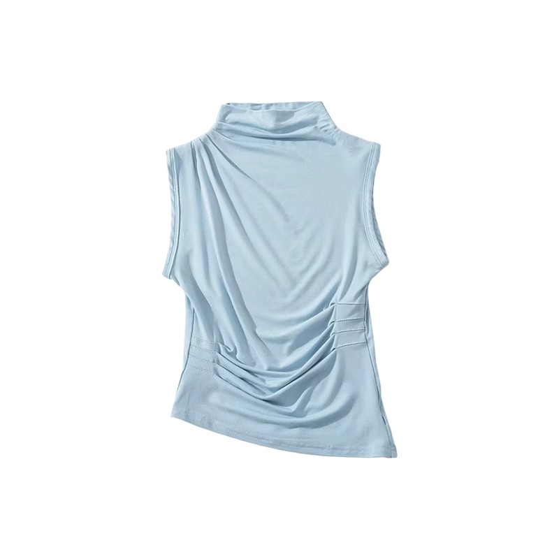 Half turtleneck sleeveless half turtleneck vest with irregular pleats