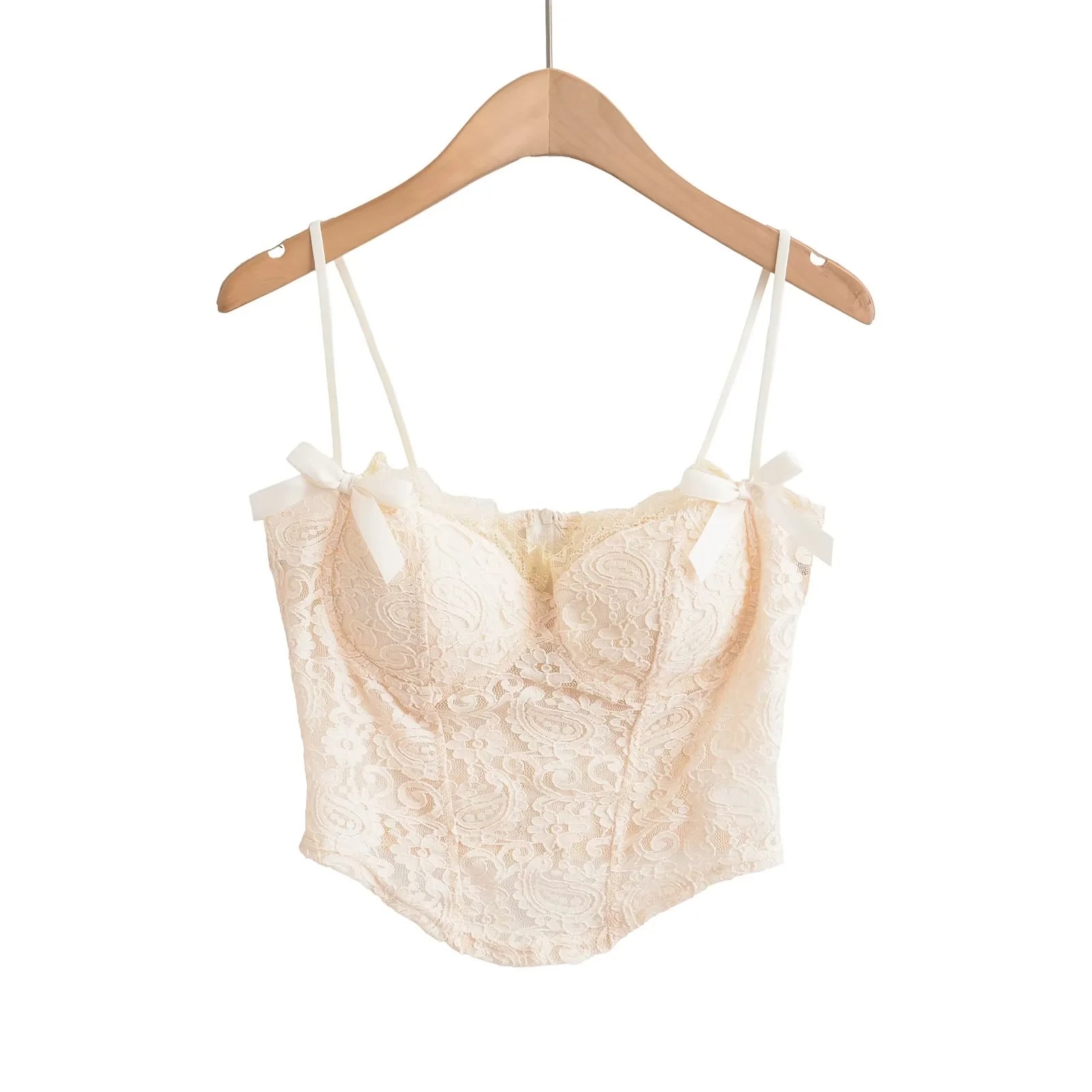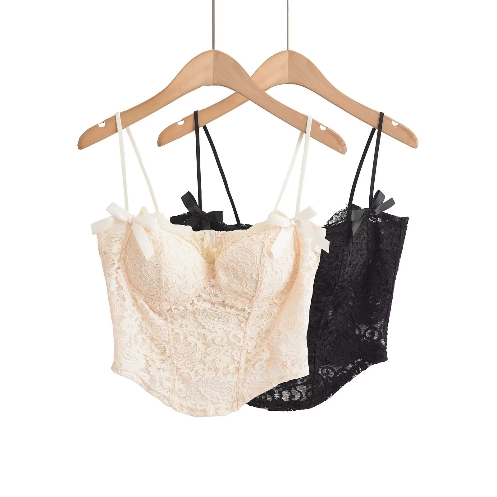 Sexy lace underwire camisole for women diamond-shaped fishbone navel-baring see-through hot girl slim fit top
