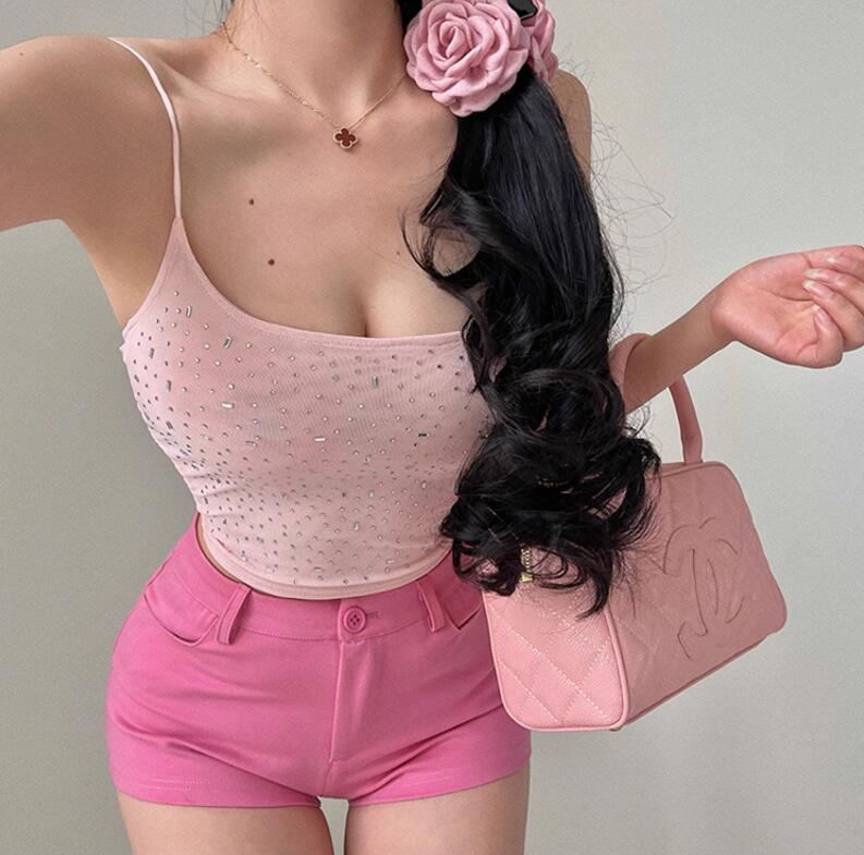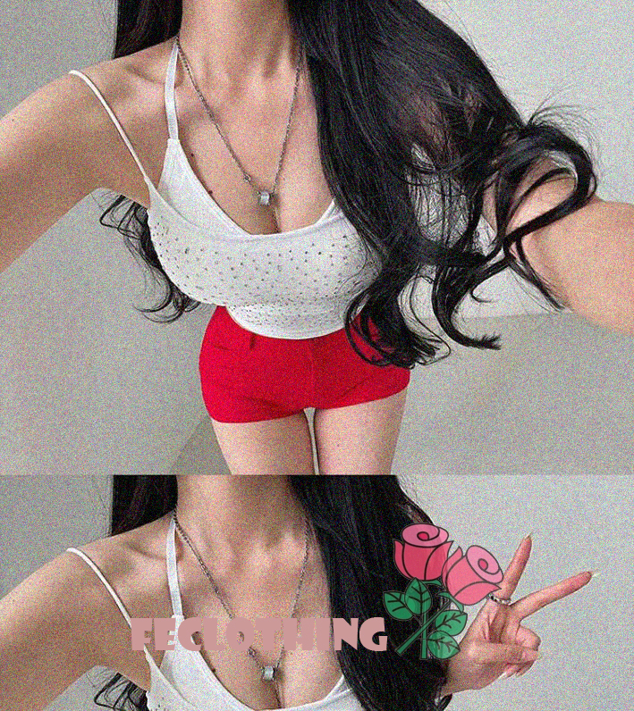 Lace patchwork mask T-shirt irregular top hot girl tight waist short sleeve