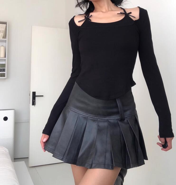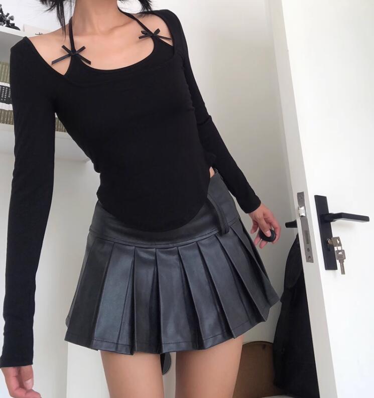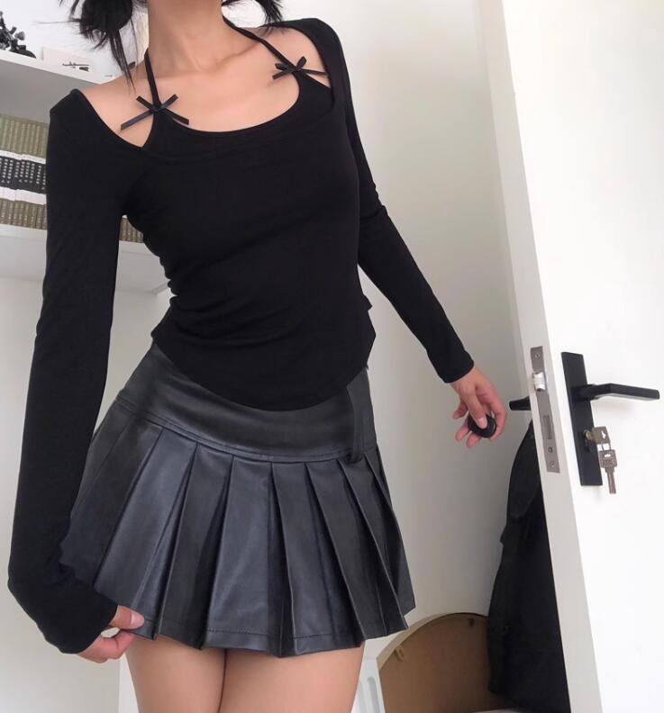 Halter neck bow long sleeve t-shirt for women autumn design short slim slim curved hot girl top