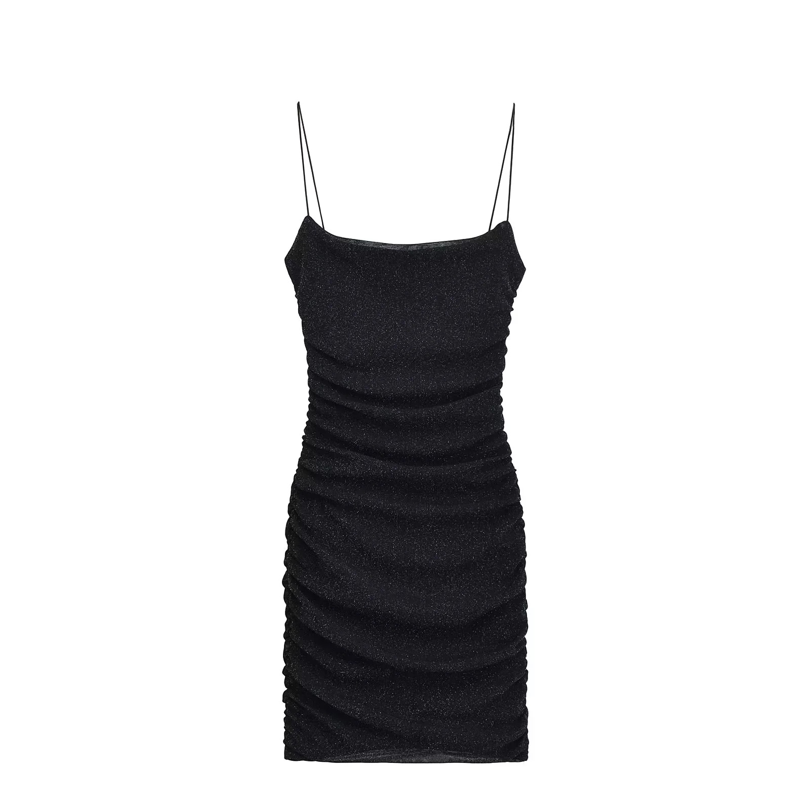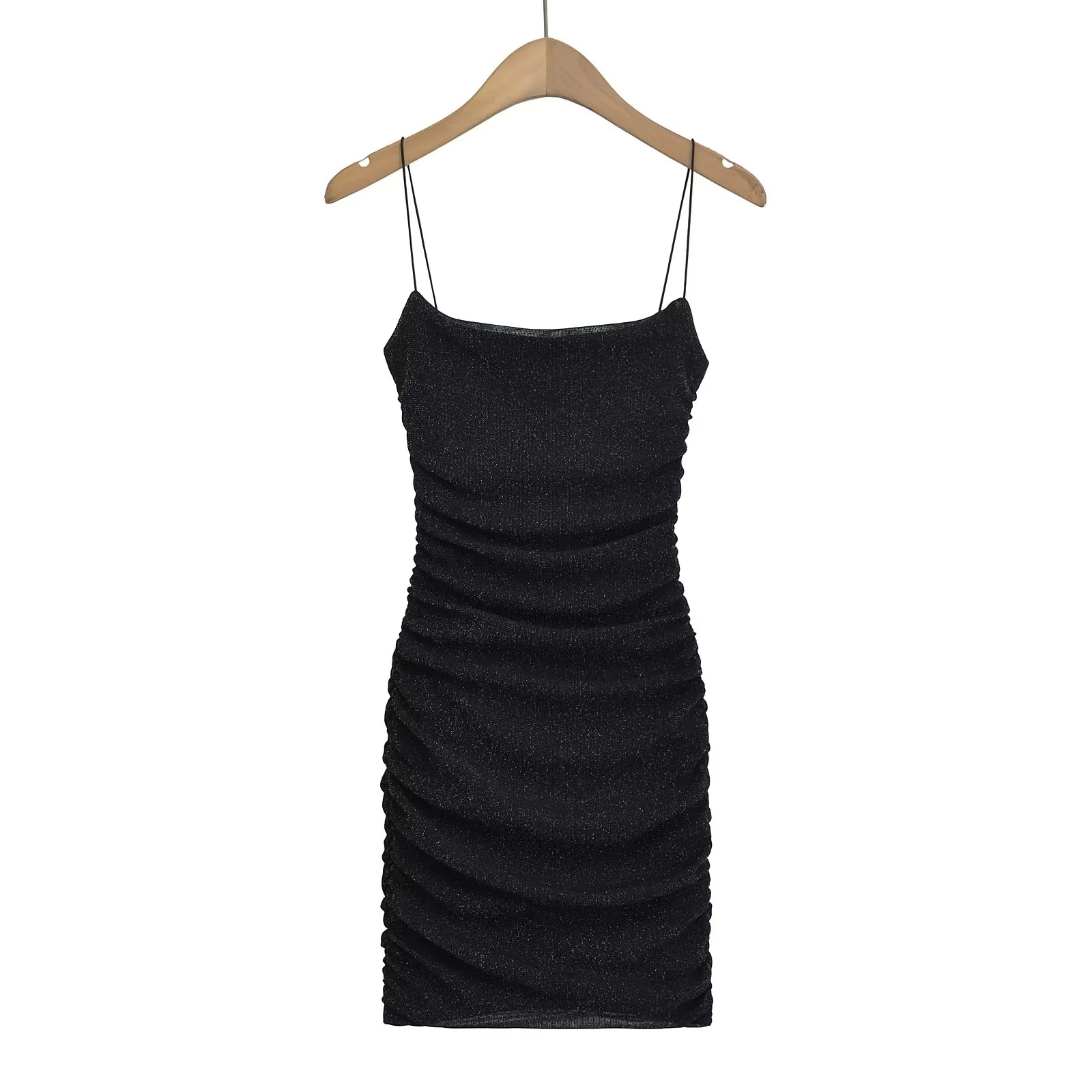 Sexy pleated A-line hip skirt silver elastic slim camisole hot girl dress