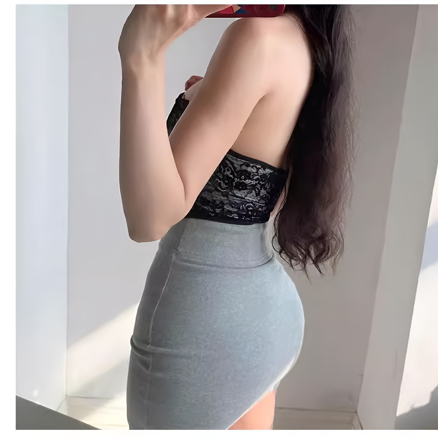 Front button lace lace sexy temptation fishbone slim waist strapless tube top