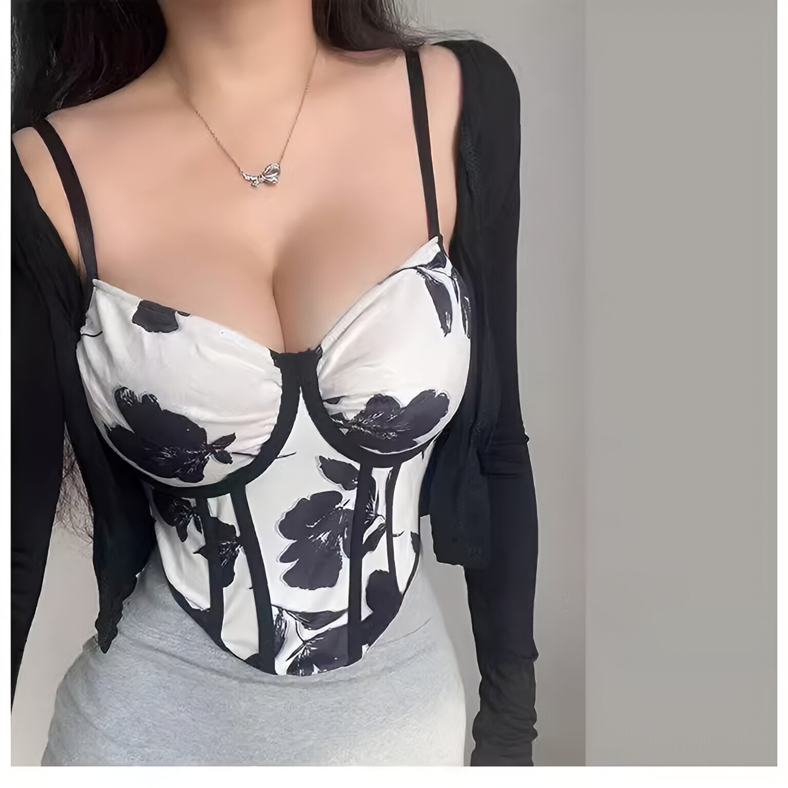 Deep V steel ring fishbone waist slim fit suede flower high-end small vest