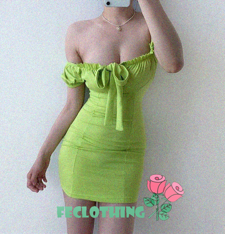 (NO REFUND AND EXCHANGE)green one shoulder tie summer dress