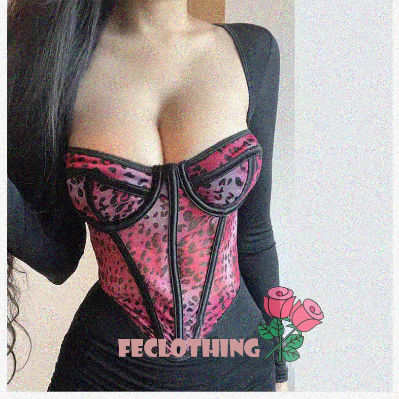 Leopard print contrast color see-through sexy mesh herringbone bra