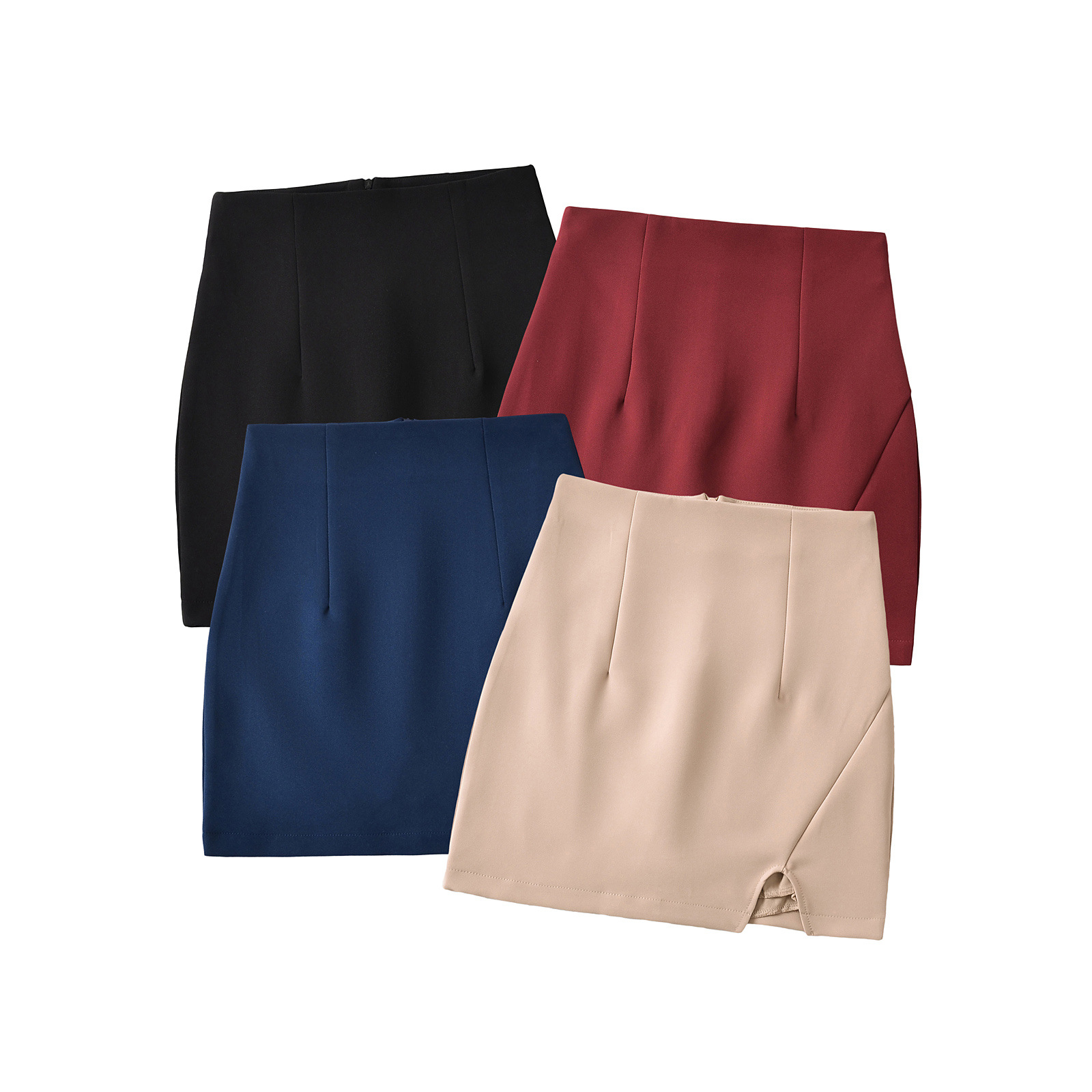 Side slit high elastic hip lift slimming A-line super short mini skirt