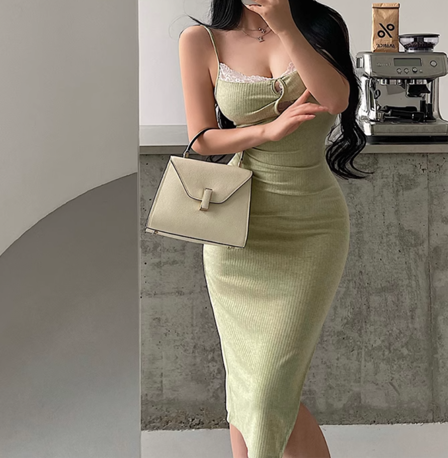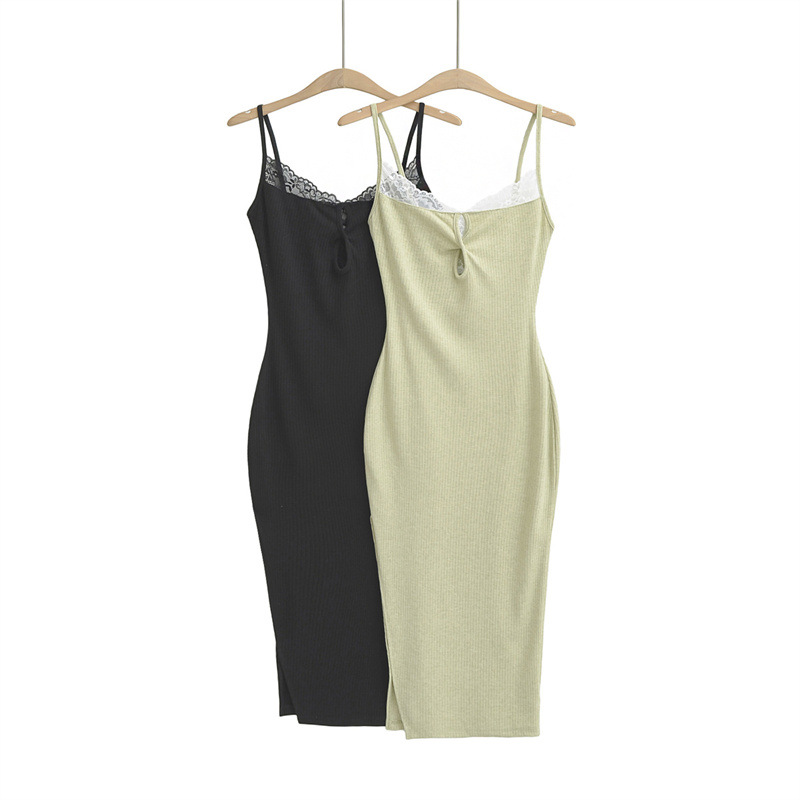 Hollow design suspender dress knitted skirt lace patchwork short skirt