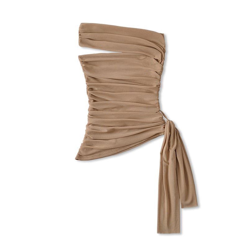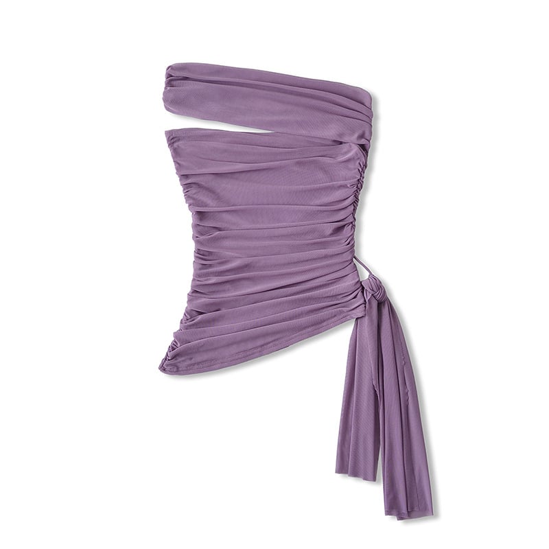 Off-shoulder mesh sleeveless T-shirt with irregular hem