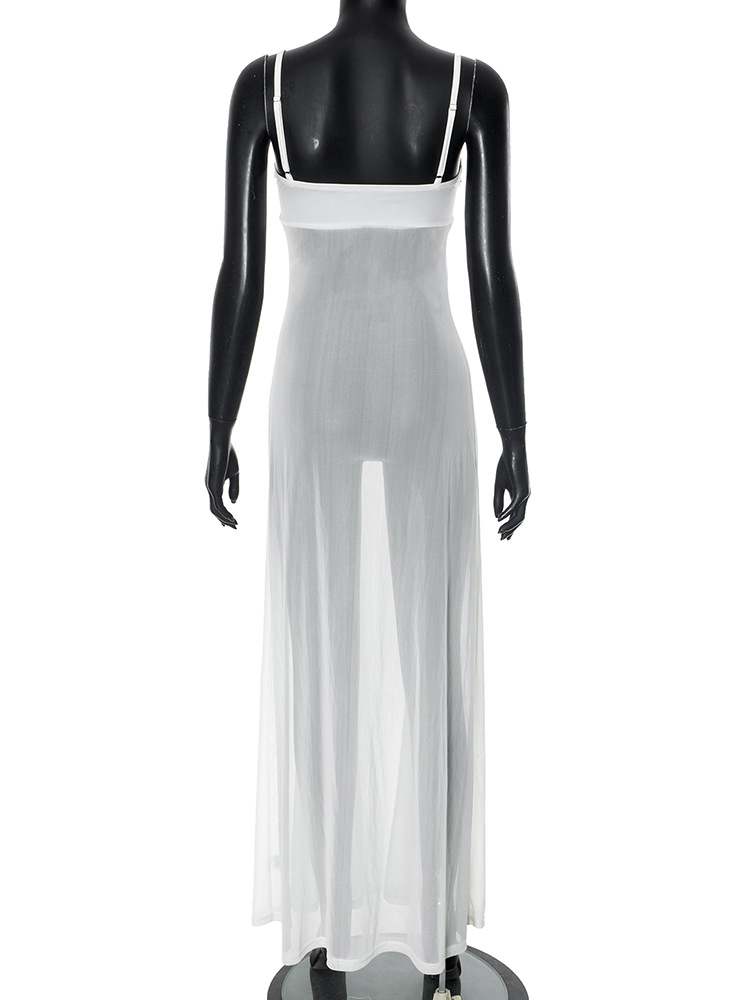 Adjustable straps long dress with floral metal detail on chest