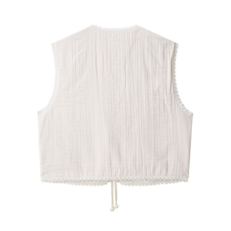 Fashionable and casual sleeveless versatile floral embroidered vest