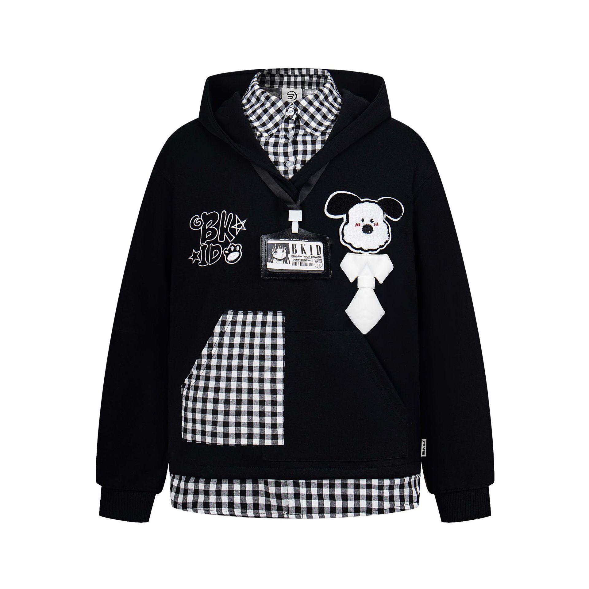 Sweet and cute fun embroidered fake two-piece sweatshirt jacket
