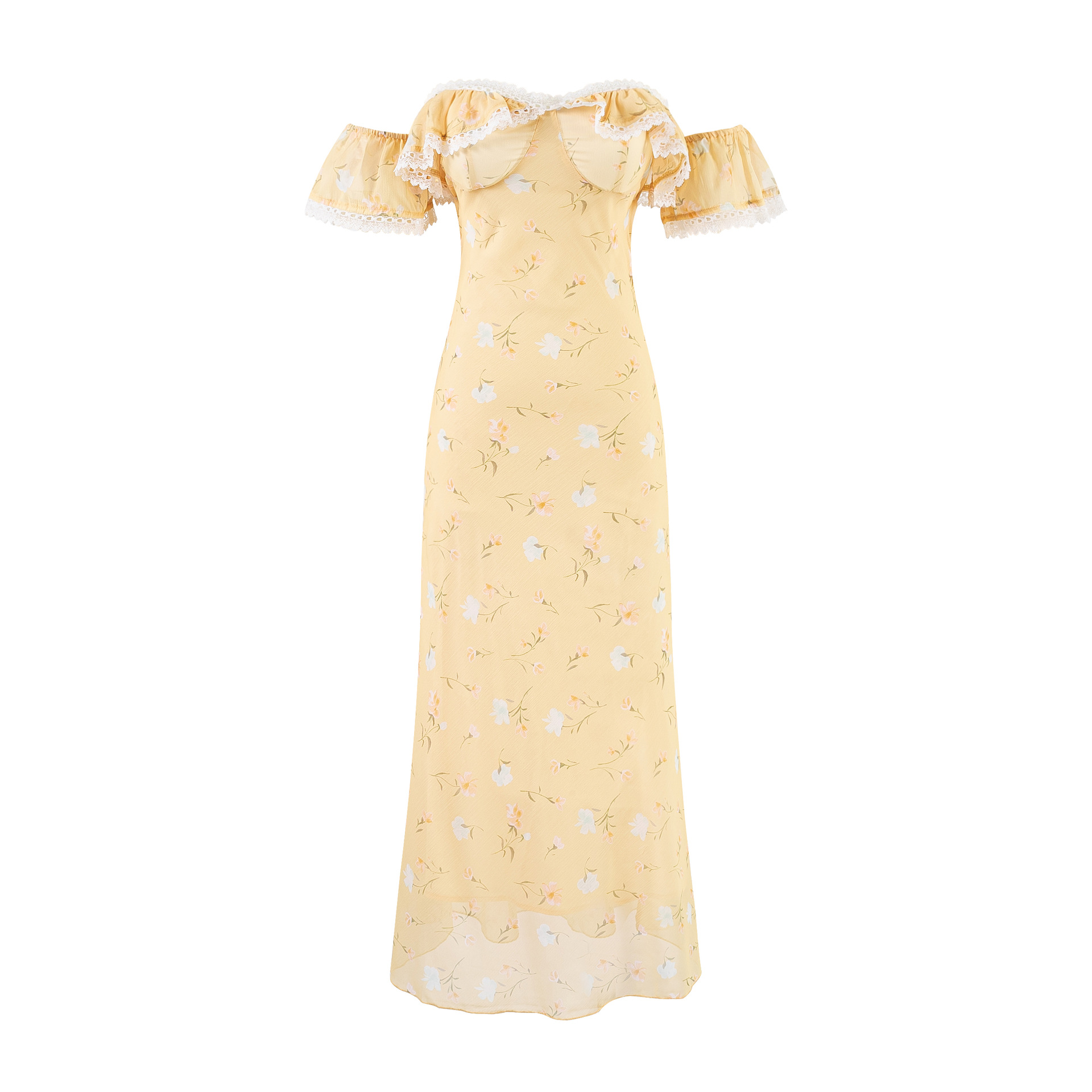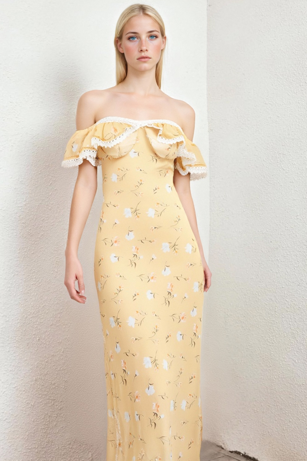 One-shoulder ruffled lace patchwork waist dress fishtail maxi dress