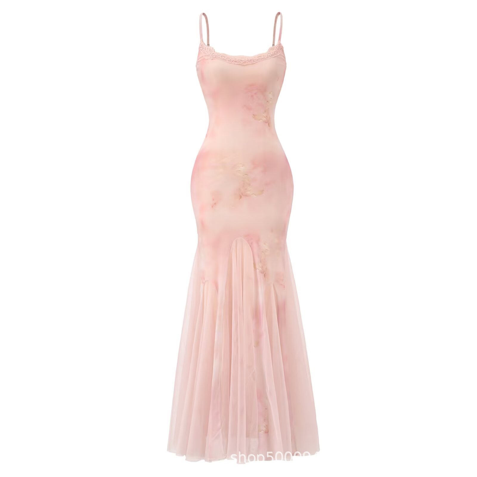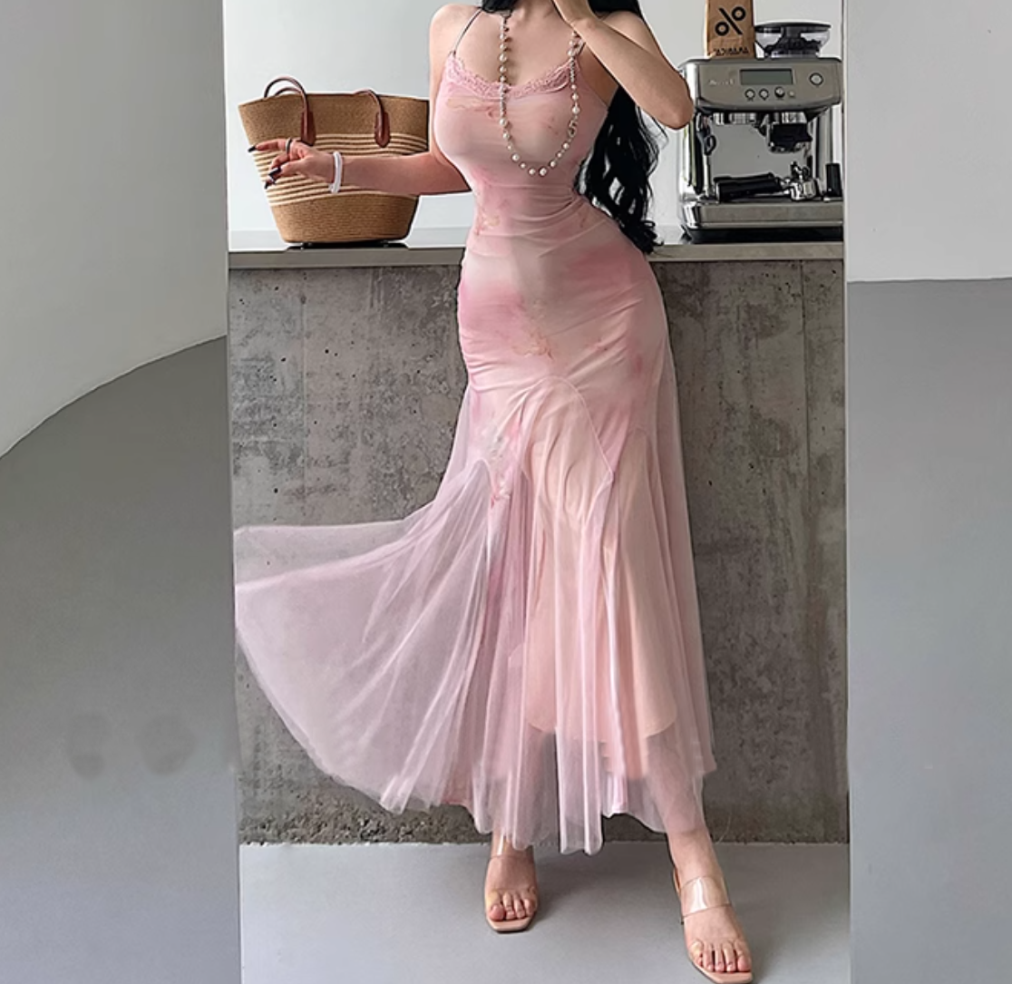Mesh splicing suspender dress seaside holiday temperament hip long skirt