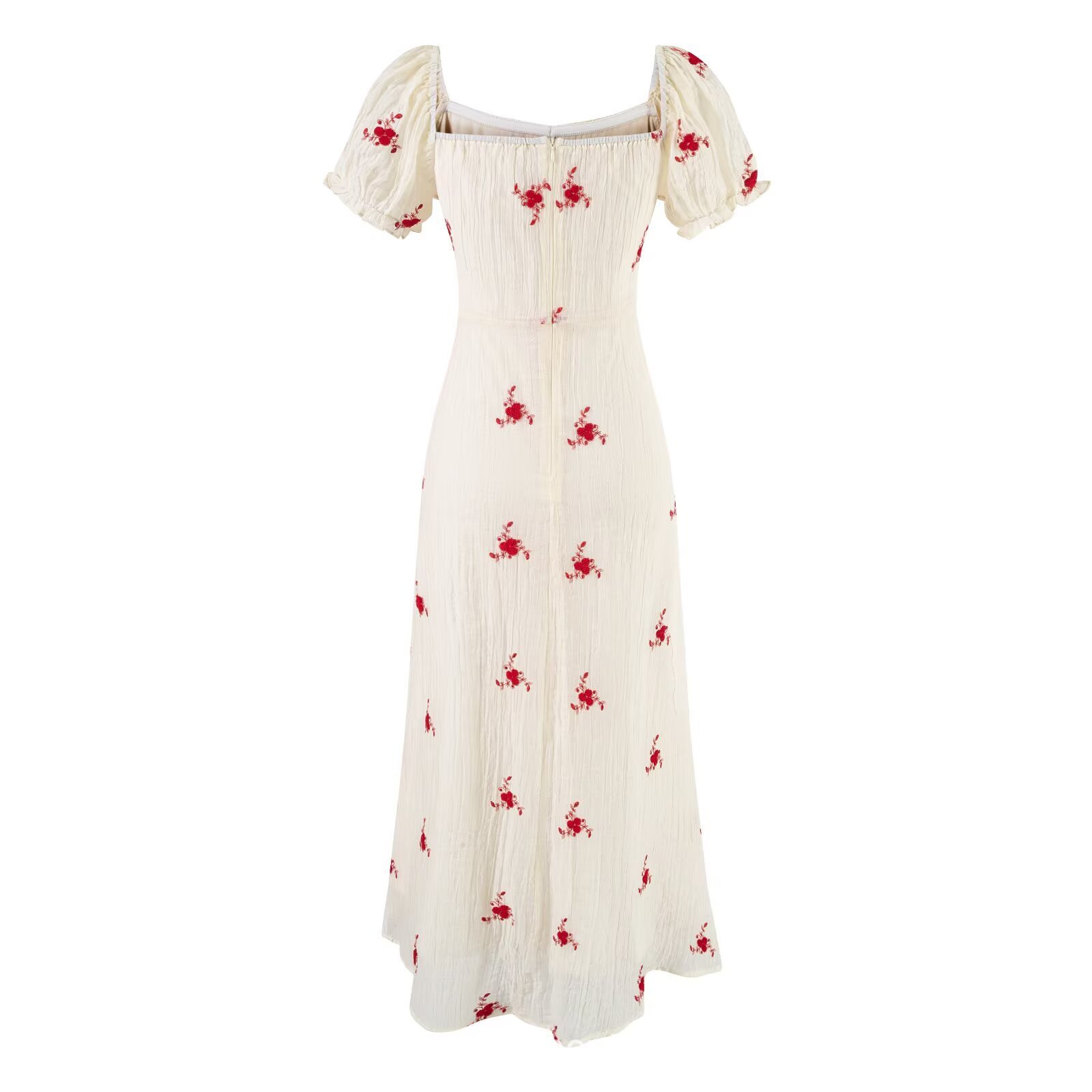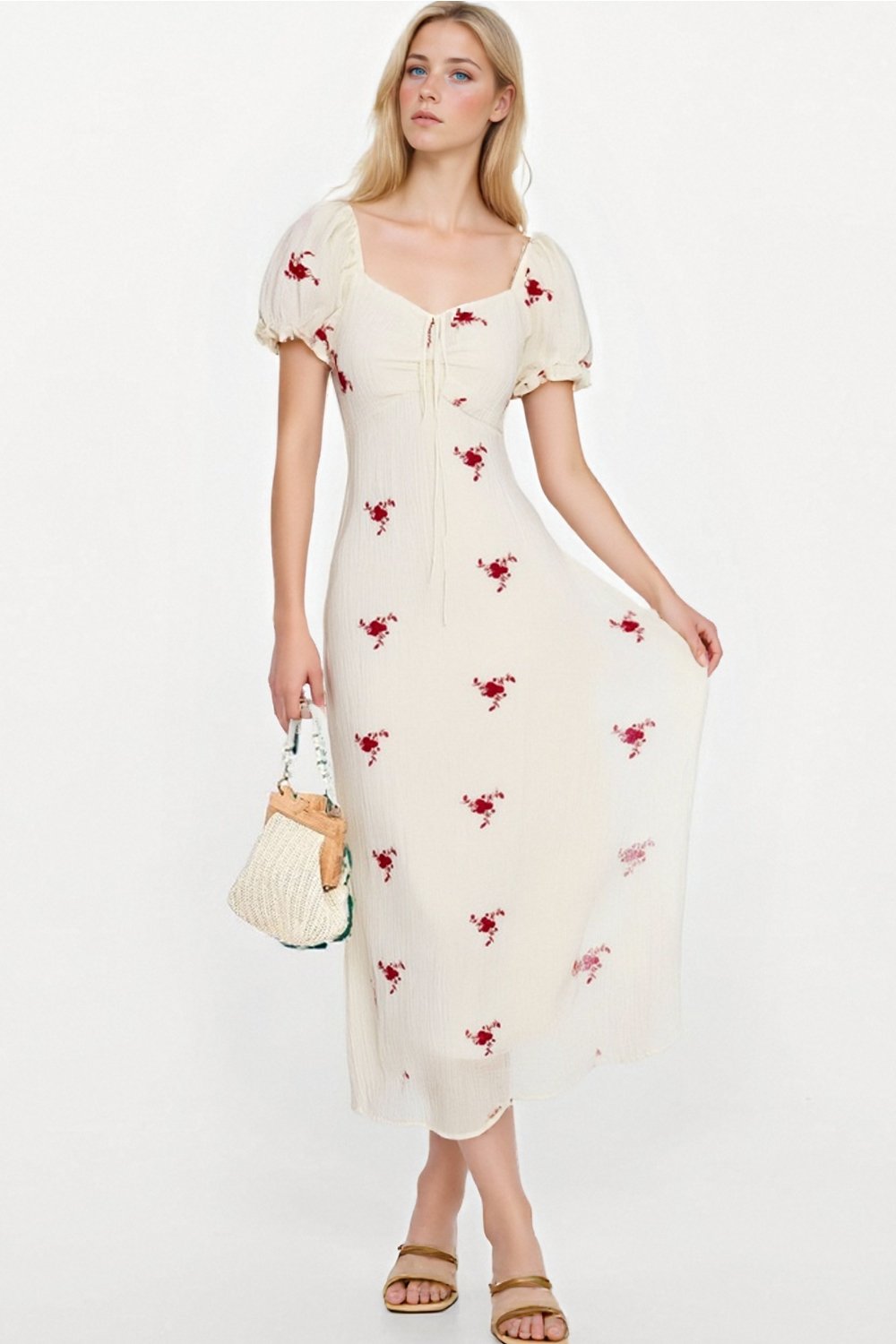 Romantic printed design A-line maxi dress holiday style slim fit dress