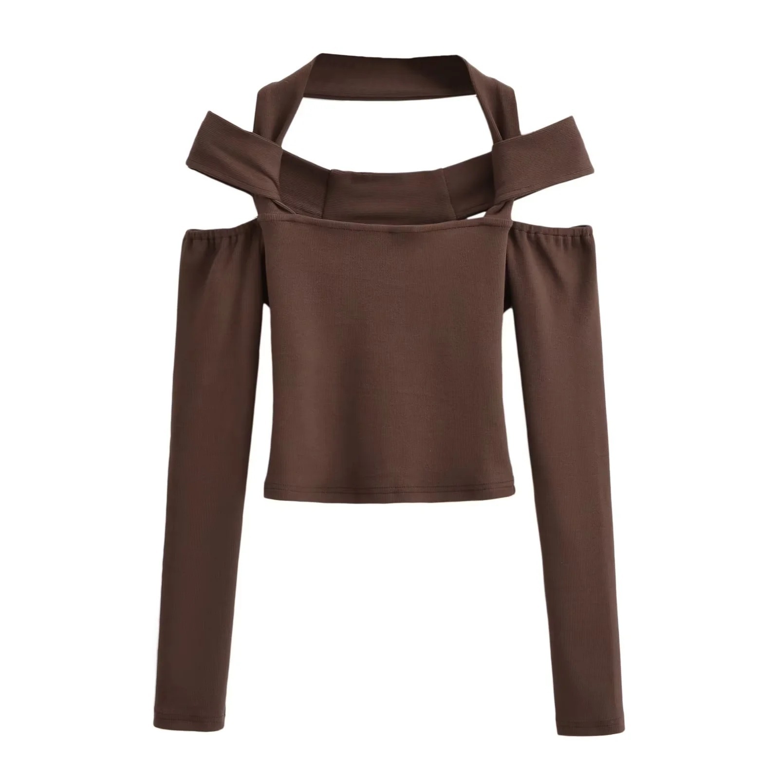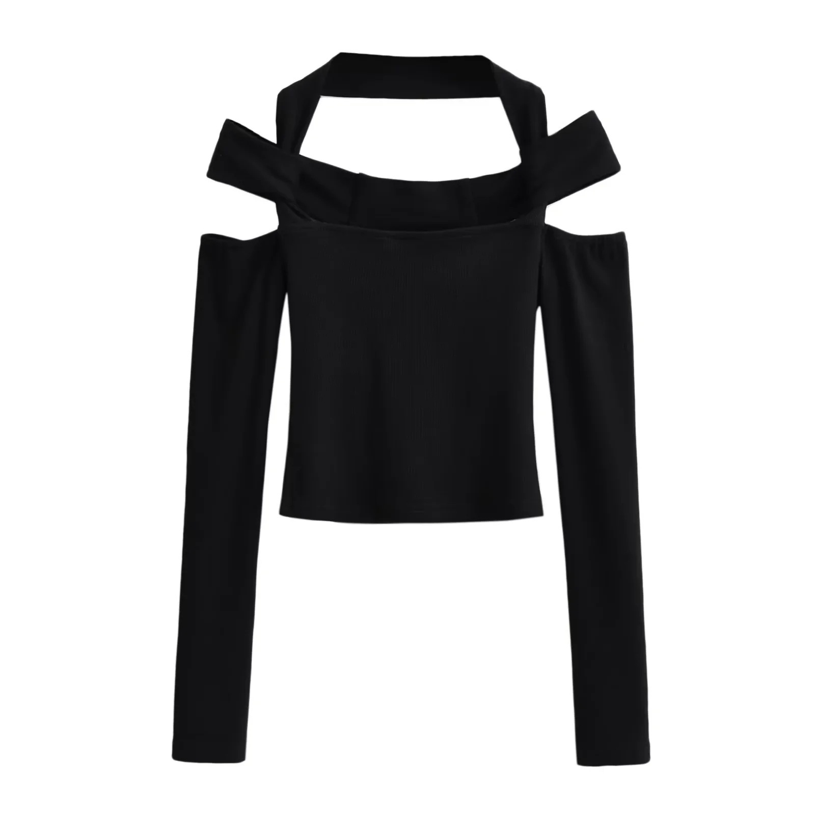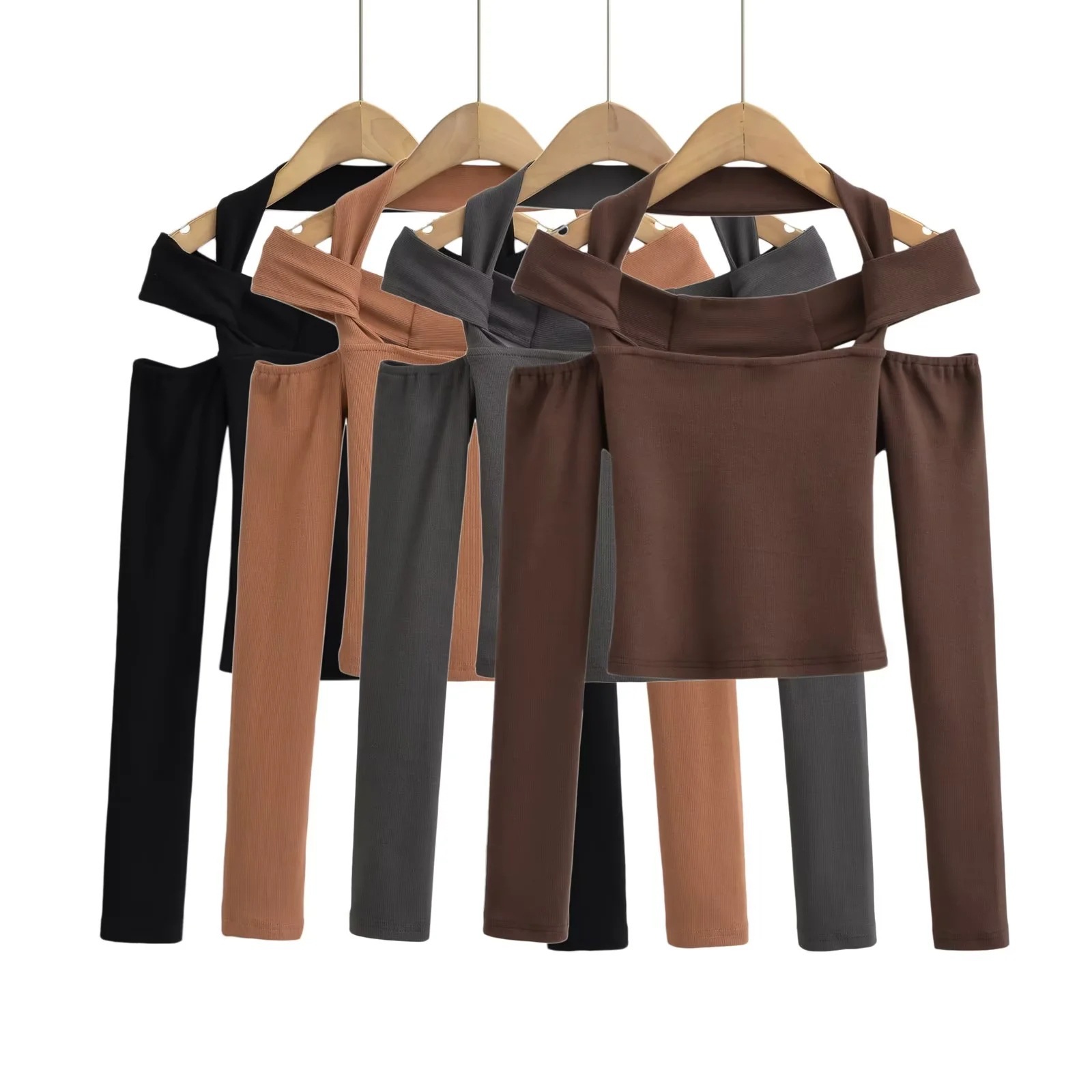 Sexy one-shoulder bottoming shirt for women in autumn new solid color tight T-shirt