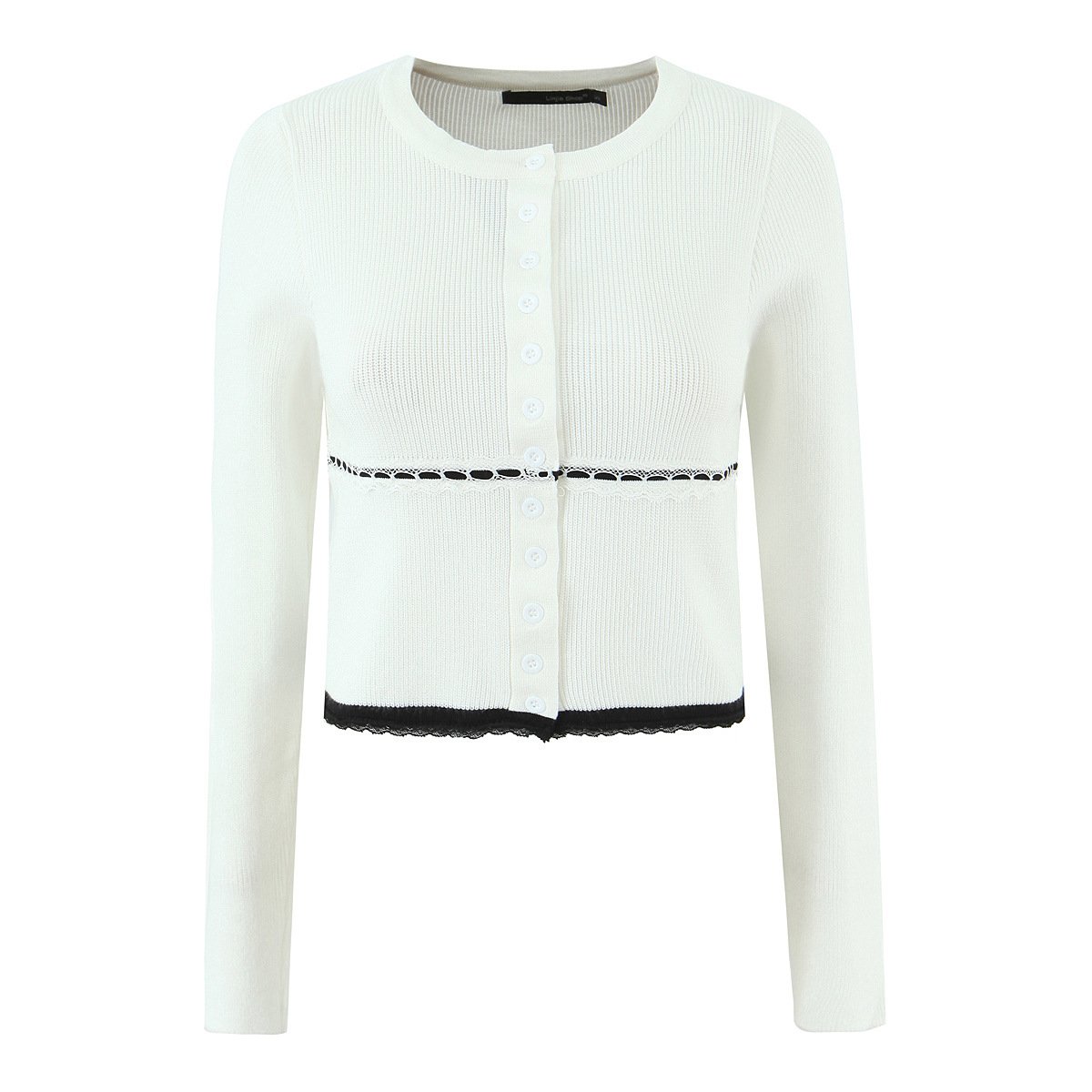 Contrast lace round neck chip cardigan long sleeves cropped cardigan