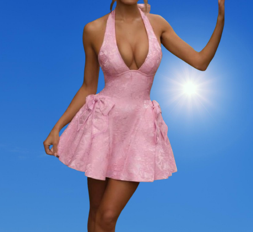 Sexy sleeveless halter neck jacquard V-neck jacquard bow celebrity style dress