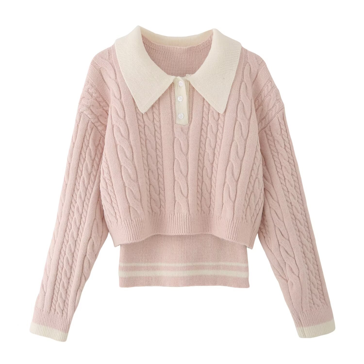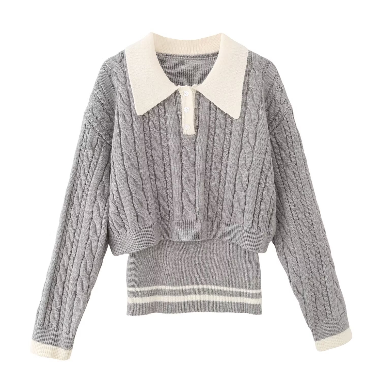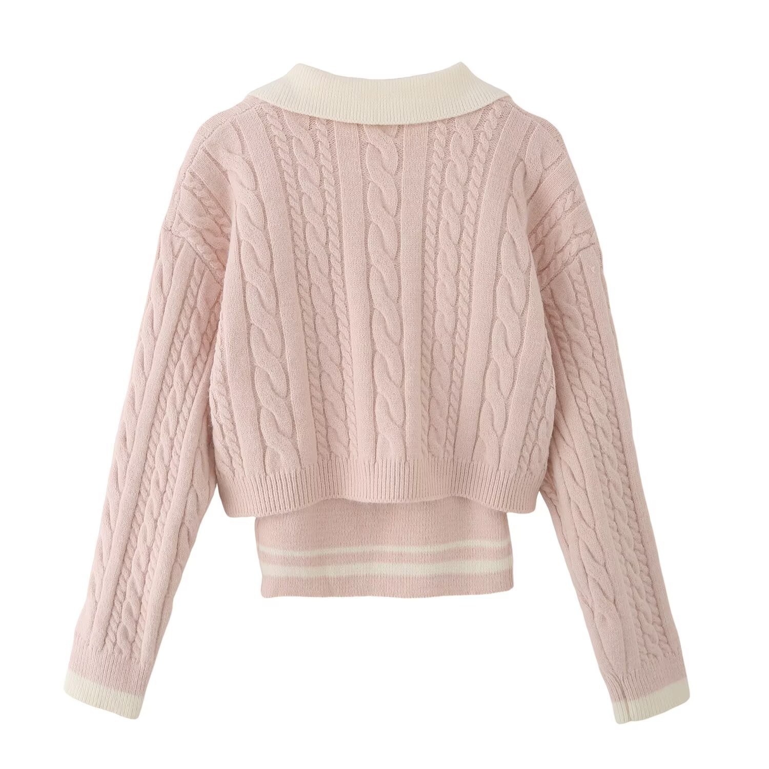 Lazy style sweet casual contrast color lapel two-piece sweater fashion suit