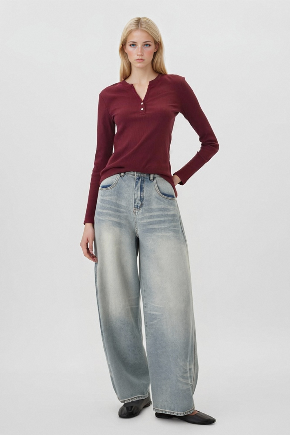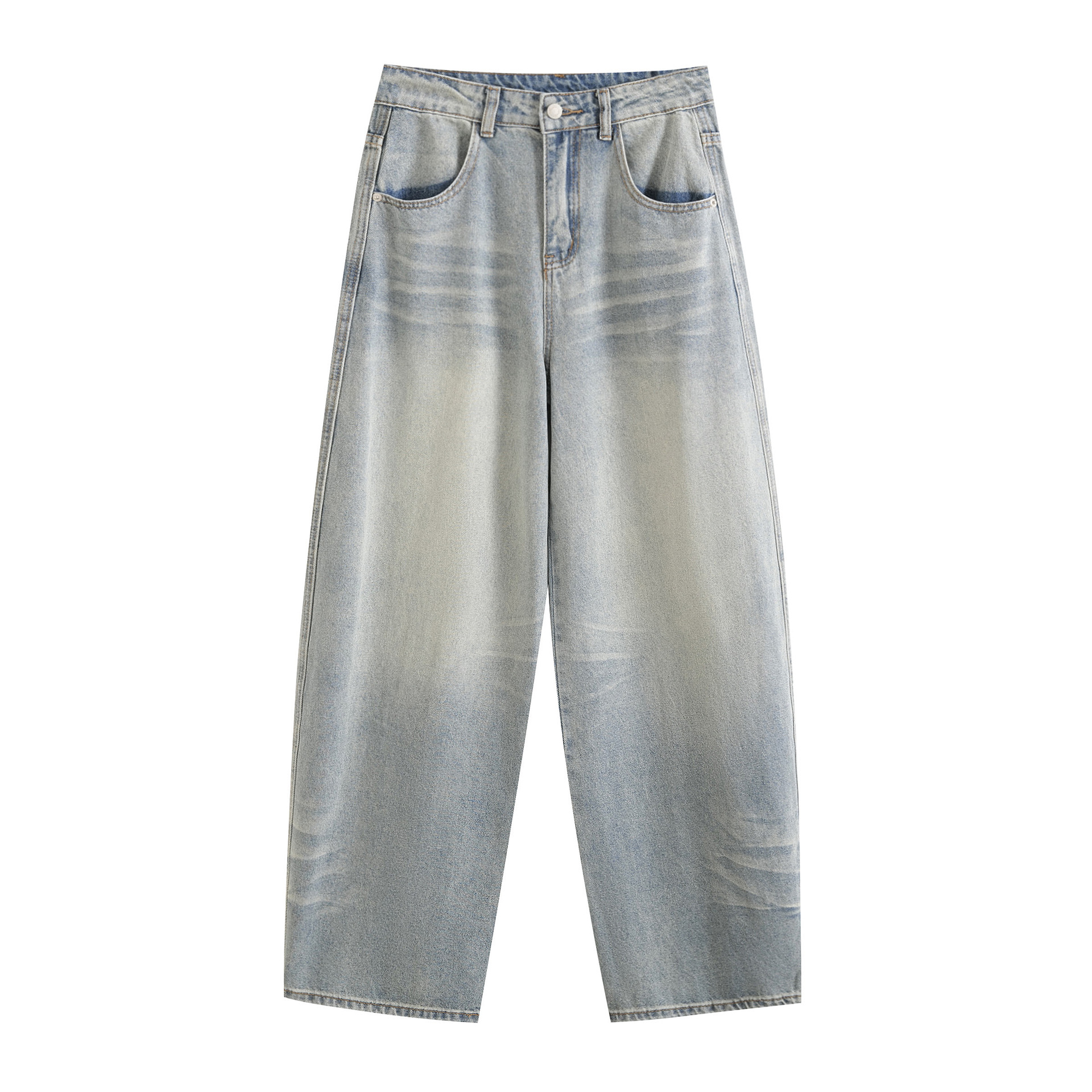 Retro back hem stacked loose wide-leg lazy style casual jeans
