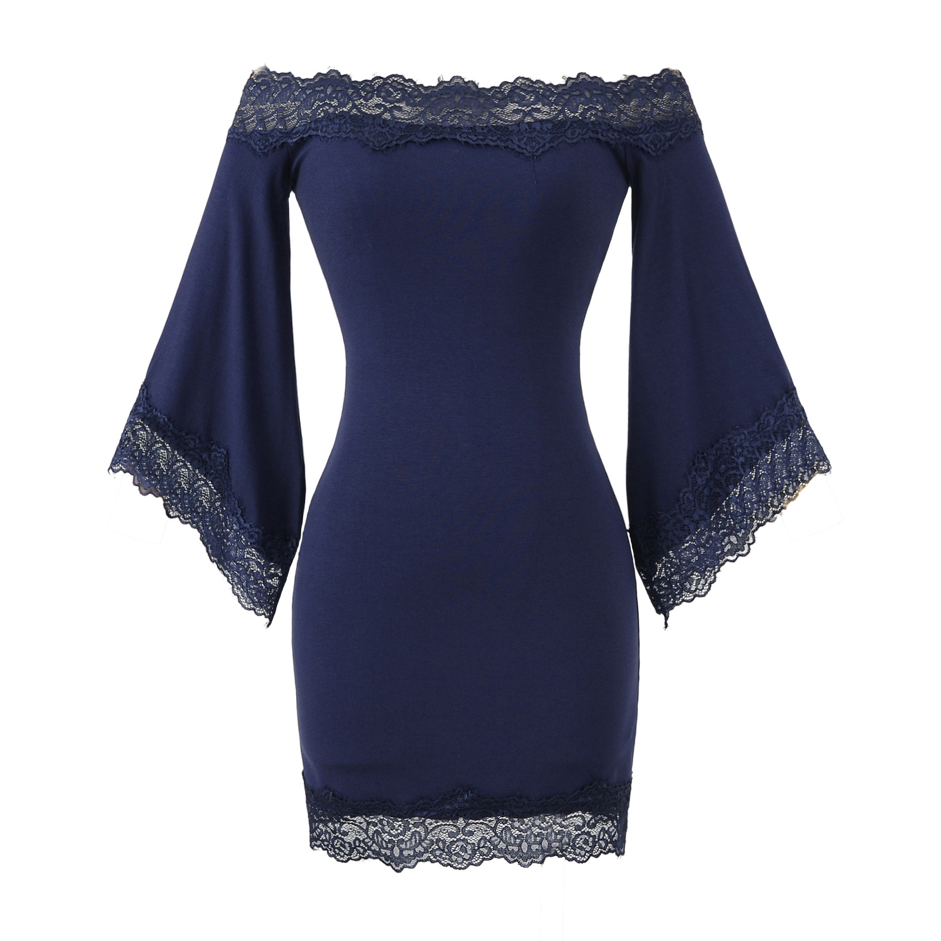 Lace one-shoulder dress with slim waist